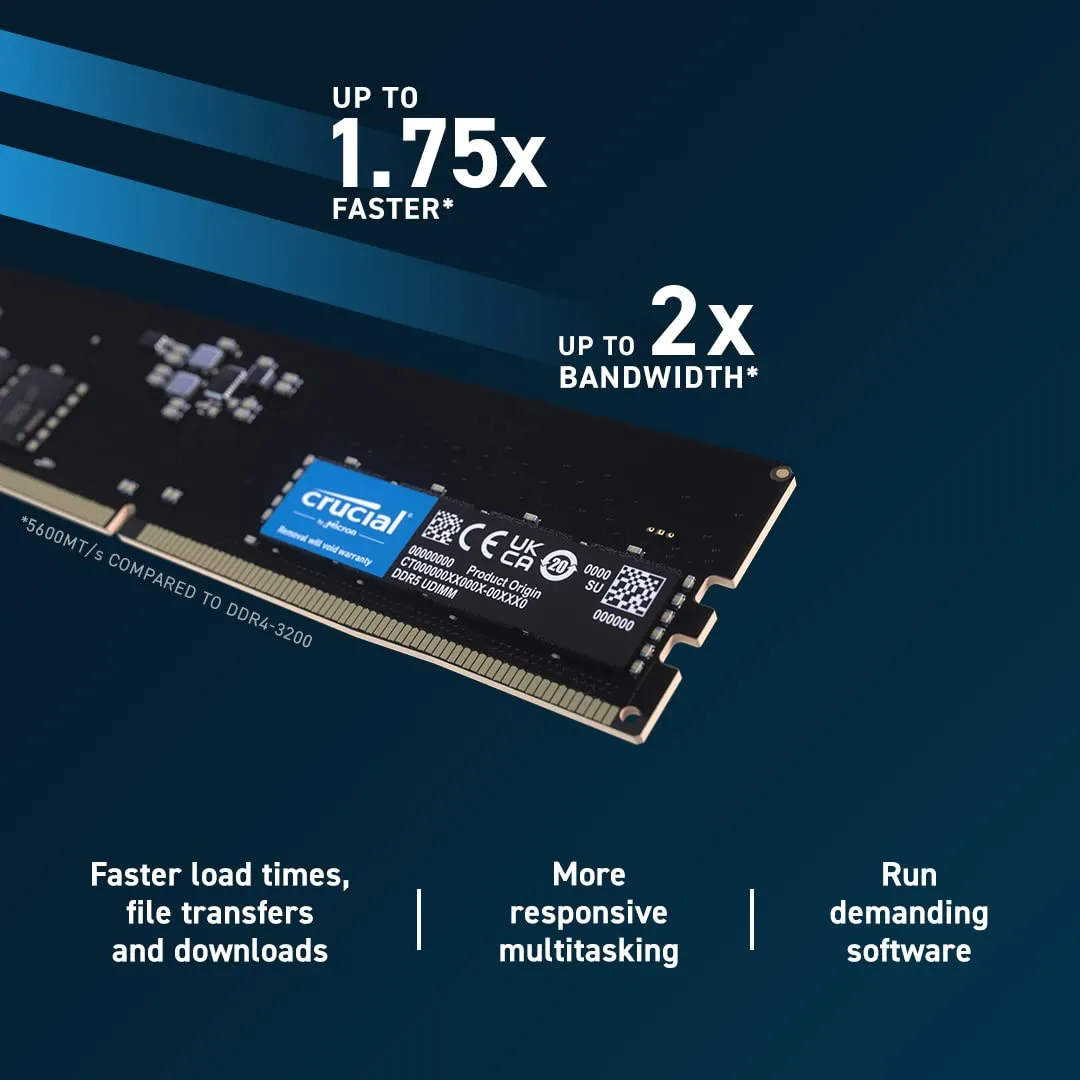 The Crucial 16GB DDR5-5600 UDIMM is designed for high-performance computing. With a speed of 5600MHz and a CAS latency of 46, this memory module provides enhanced speed and efficiency for your system. Perfect for gaming, content creation, and multitasking, this memory is an excellent upgrade for your desktop.