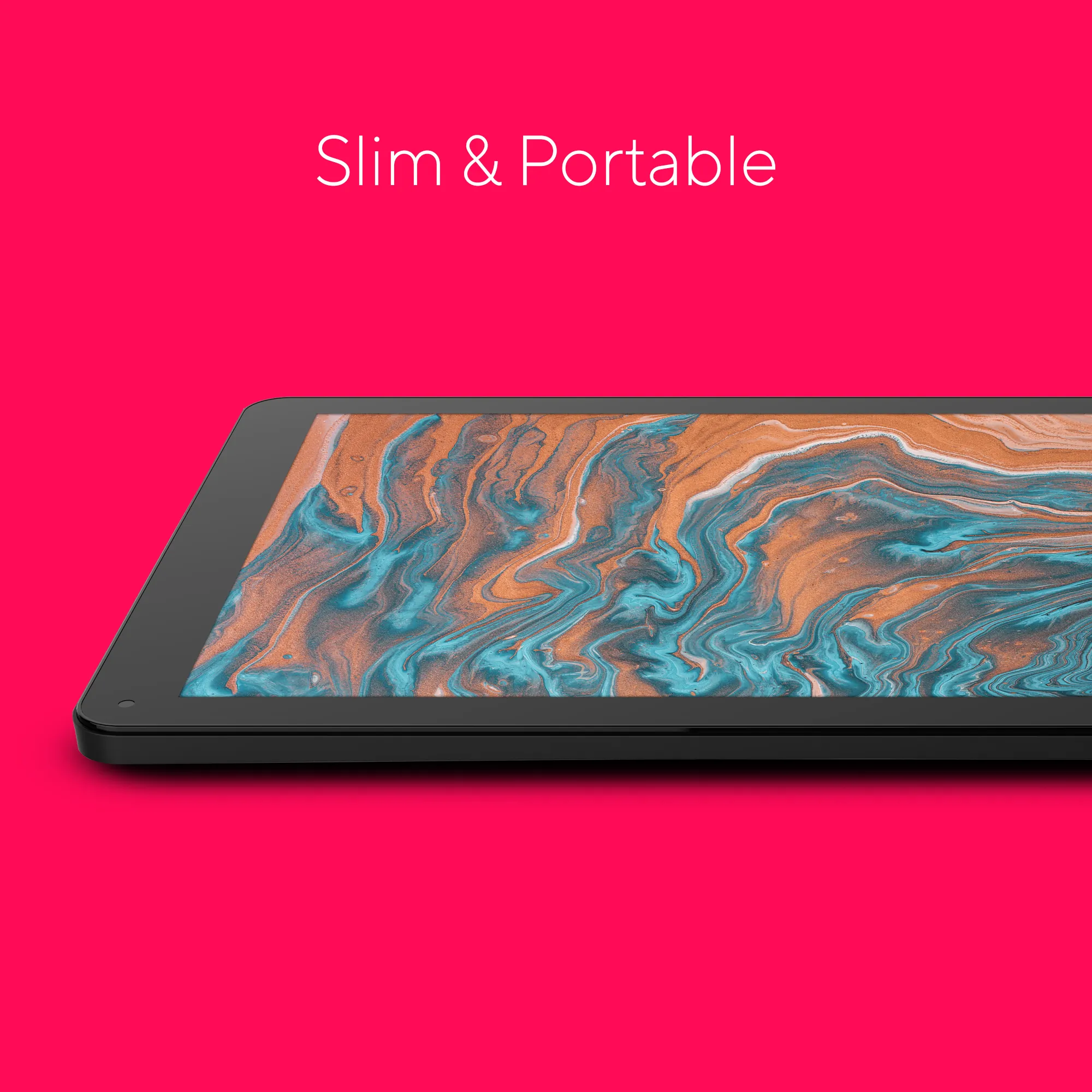 With 16GB of built-in storage and a Micro SD card slot for expandable memory, you’ll have ample space for your favorite content, from songs and videos to apps and eBooks. Enjoy music and movies with the included headphones and boost your productivity using the matching keyboard folio. Available in a variety of vibrant colors including black, blue, purple, teal, and pink, there's an ideal option for every family member.