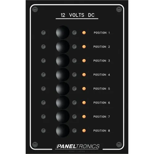 The 8-Position DC Circuit Breaker Panel with LED Indicators is designed for reliable circuit management in various applications. This panel offers a user-friendly interface and efficient performance, allowing for quick identification of circuit status.