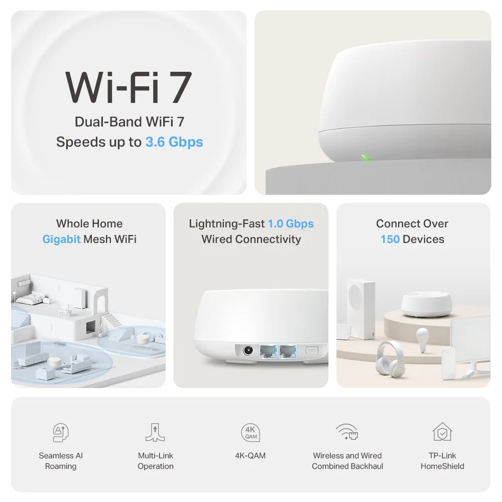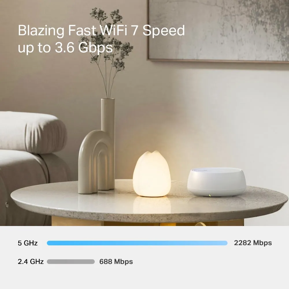 Experience lightning-fast internet speeds and seamless connectivity with the TP-Link DECO WB10800 Mesh Wi-Fi 7 System. This advanced system provides comprehensive coverage for your entire home, eliminating dead spots and ensuring reliable connections for all your devices.