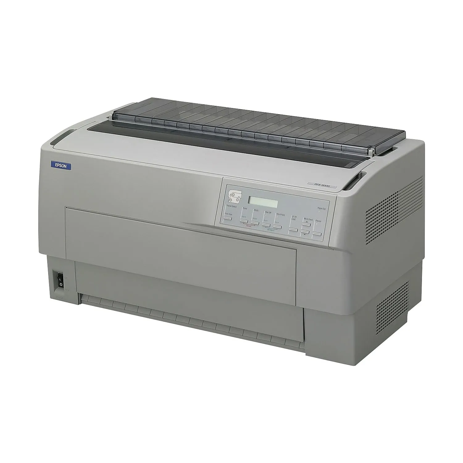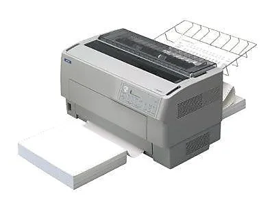 EPSON DFX-9000 9-Pin Printer-Wide. With speeds up to 1550 cps and an MTBF rating of 20,000 power-on hours, the Epson DFX-9000 offers the power and durability to tackle the most demanding print tasks. Day after day, you can count on it to efficiently process everything from reports and 10-part forms to shipping documents or mailing labels. Its advanced paper handling capabilities make it the perfect solution for a wide variety of applications, including critical spreadsheets, checks, invoices, bar codes and more. With Parallel, Serial, and USB interfaces standard, plus a type-B slot for optional connectivity, the DFX-9000 easily attaches to new or legacy systems in standalone or networked environments.