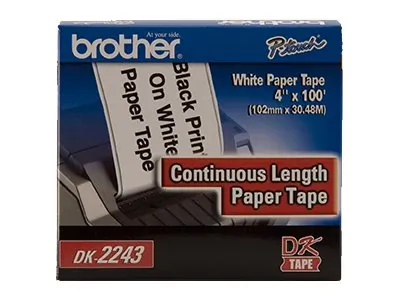 Dk tape for use with brother ql1050, ql1060n, ql1110nwb. This is a OEM PAPER/PAPER ACCESSORIES BROTHER brand Paper and Accesssories Supply (DK TAPE) that works with the following printers / machines (QL1050, QL1060N, QL1110NWB). Product Features: Compatible with: Brother QL-1050, QL-1050 TypeA, QL-1050N, QL-1060N, QL-1100, QL-1110NWB Included Qty: 1 roll(s) Media Color: Black on white Media Size: Roll (10.1 cm x 30.48 m) Product Description: Brother DK2243 - continuous tape - 1 roll(s) - Roll (10.1 cm x 30.48 m) Product : Paper Product Type: Continuous tape Key Selling Points:, 4 in x 100 ft (101 mm x 30.4 m) Black on White Continuous Length Paper Tape, Continuous Length white paper labels, Continuous length that can be cut to any size you need (based on your Brother QL model), Great for Flat envelope addresses, binders, storage boxes, large-size packages, banners, signs, and more, For Brother QL-1050, QL-1050N, and QL-1060N label printers, Brother Genuine DK tapes are Engineered With Excellence, Trust the longstanding reliability of Brother Genuine Supplies for all of your Brother QL printing needs., Protect your label printer investment: using unreliable aftermarket labels may result in damages to your label printer that may not be covered under warranty., For full product specifications see www.brother-usa.com Benefits of this product: The DK2243 Continuous Length white paper labels are designed for use with select Brother label printers. What's In the Box:, Brother DK2243 Continuous Length white paper labels. DK TAPE. QL1050, QL1060N, QL1110NWB. OEM BROTHER Brand.