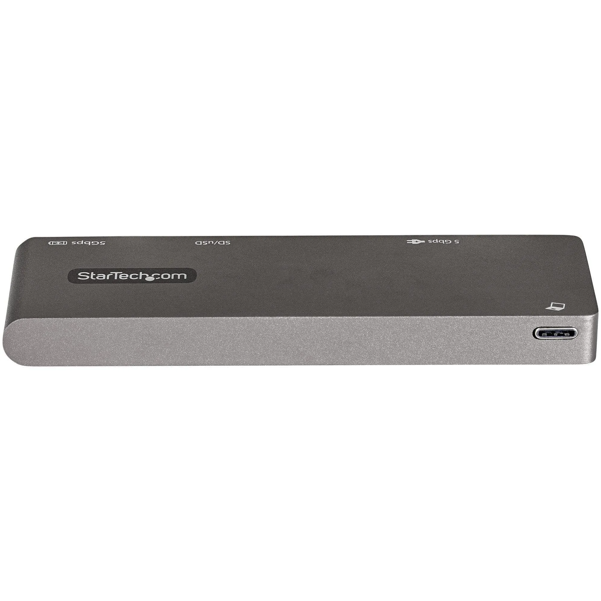 The adapter can be powered through USB bus or a USB Type-C laptop power adapter, featuring up to 100W Power Delivery 3.0 pass-through (8W for the docking station and up to 92W for charging), ensuring your devices stay charged while in use.