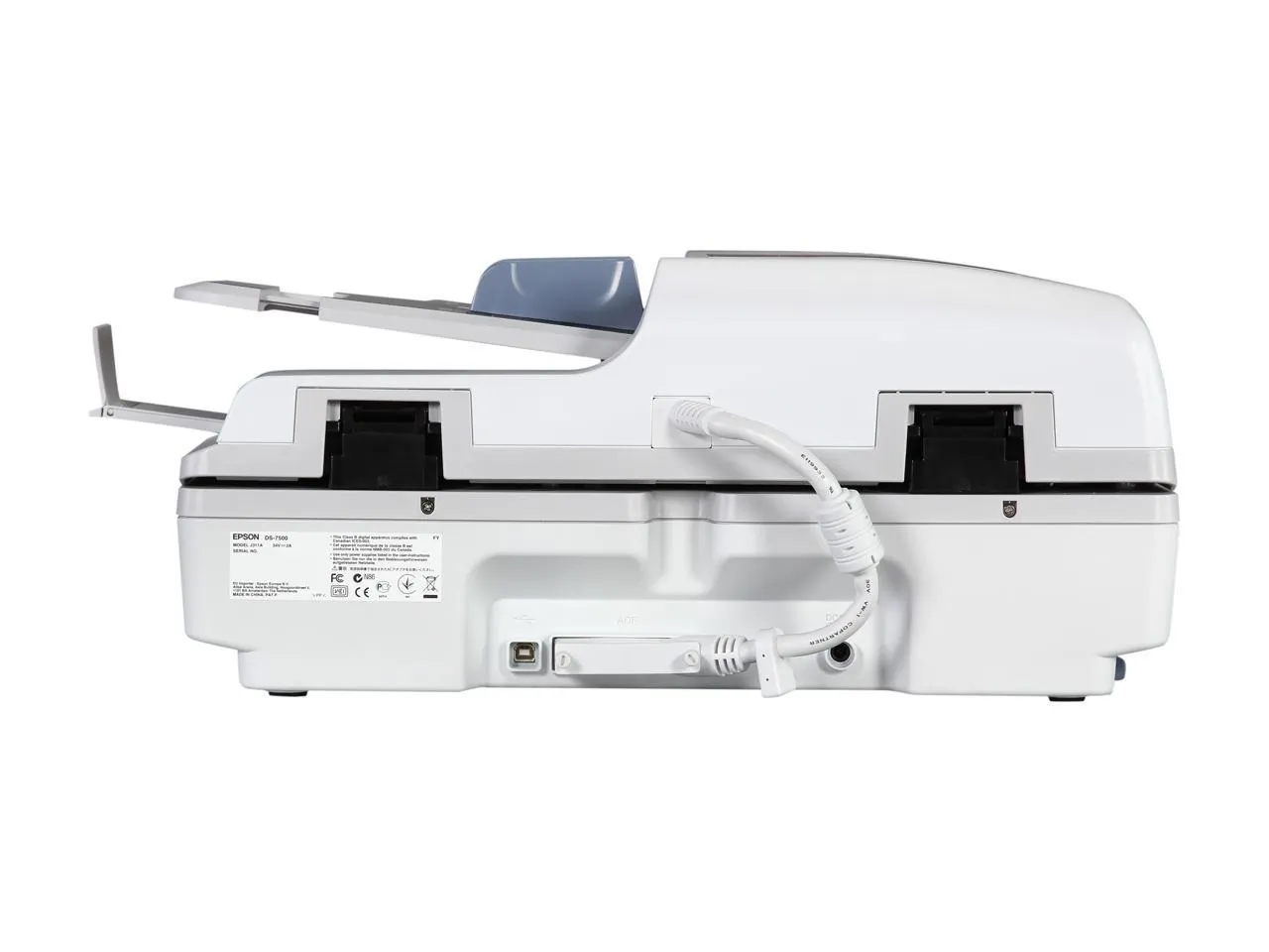 DS-7500 WorkForce Color Document Scanner... High-speed, 2-sided document imaging, along with flatbed versatility, is right at your fingertips with the fast, affordable WorkForce DS-7500. This high performance scanner delivers remarkable scans from 4" x 6" and up to 8.5" x 40", quickly scanning 2-sided documents in just one pass. Use the 100-sheet Automatic Document Feeder (ADF) to scan stacks of one- or 2-sided documents. Or, use the 8.5" x 11.7" flatbed to scan hard-bound books or other odd-sized items. The DS-7500 blazes through each task at speeds up to 40 ppm / 80 ipm1. And, its 4 line CCD sensor (RGB and black) consistently delivers vivid colors and crisp, sharp text. Plus, with productivity software included and the optional network scan module, each member of your team can access high performance scanning for critical project needs.