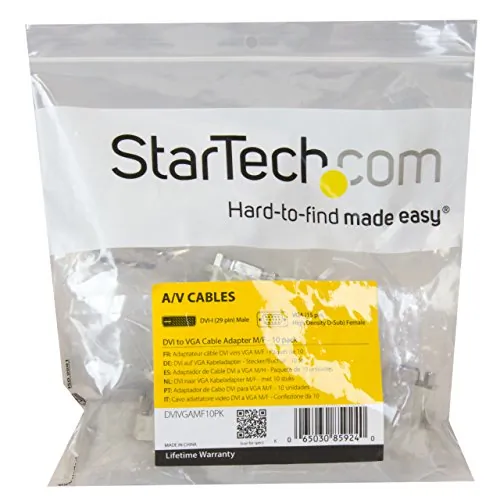 The DVIVGAMF10PK10-pack of DVI-I to VGA Adapters offers a cost-effective option when you have multiple DVI-enabled computers to connect to VGA monitors.