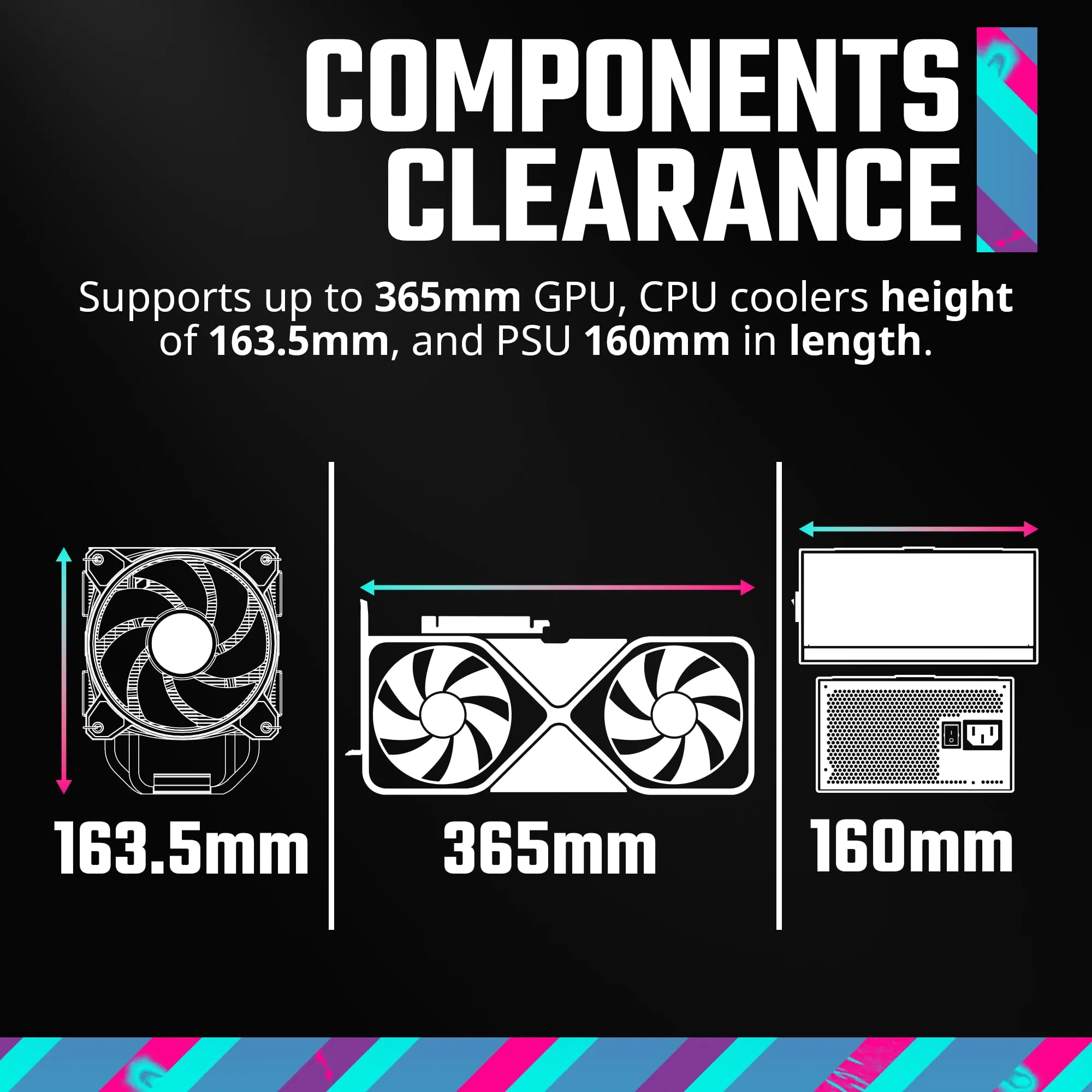 Its fully black-coated interior and integrated PSU cover not only enhance aesthetics but also promote an organized and clutter-free build. Ideal for those looking for functionality combined with a clean look, the Elite 301 is perfect for any gaming setup or workstation.