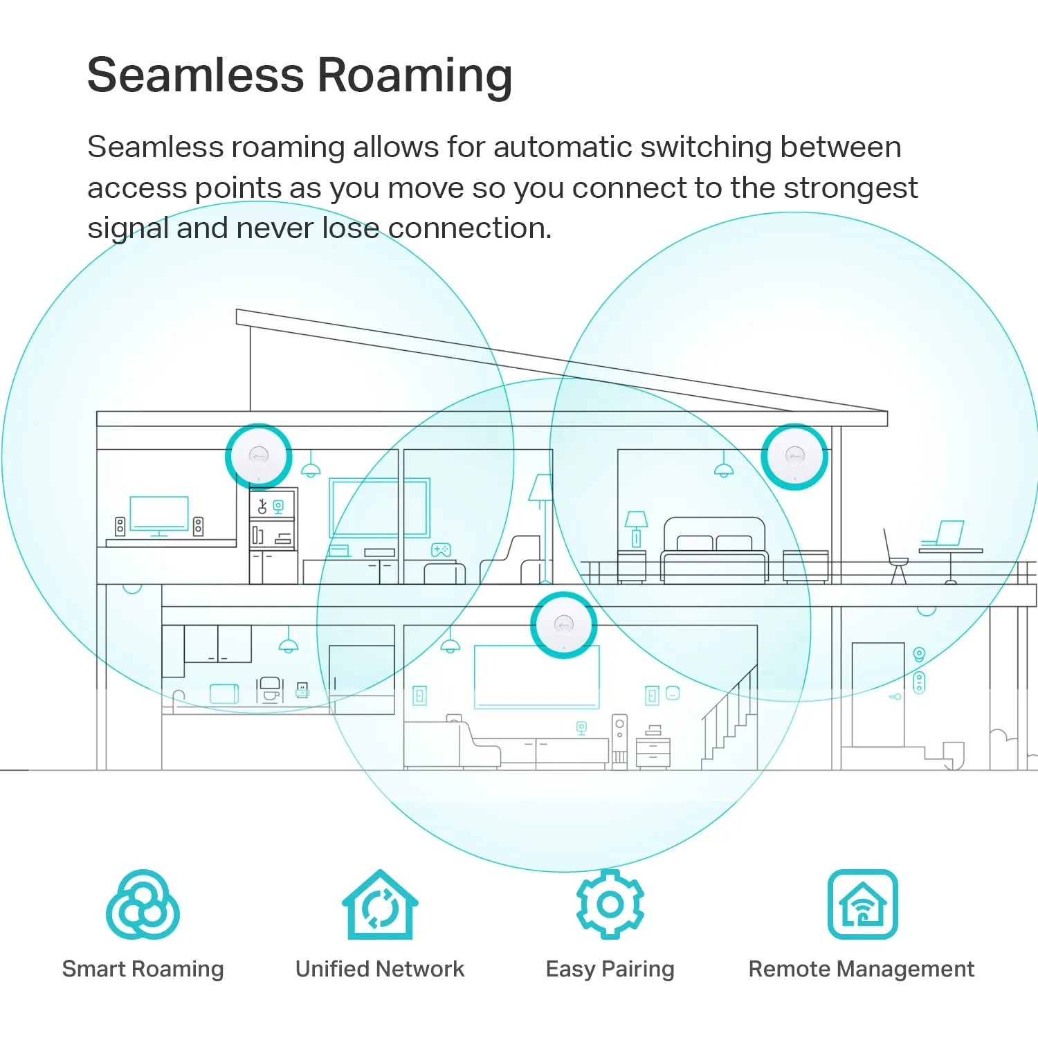 - Omada Mesh: Enables wireless connectivity between access points for extended range and flexible deployment.