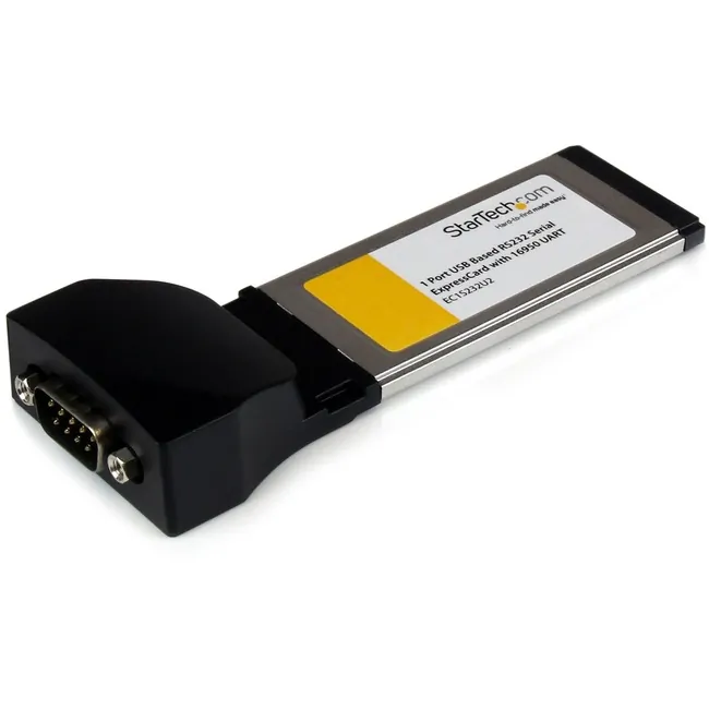 The EC1S232U2 ExpressCard RS232 Serial Adapter Card (USB-based) (16950 UART) adds an RS232 (DB9) serial port to your ExpressCard-equipped laptop, enabling you to connect an RS232 serial peripheral device such as a plotter, digital signage device, receipt printer or bar code scanner through an available ExpressCard slot.