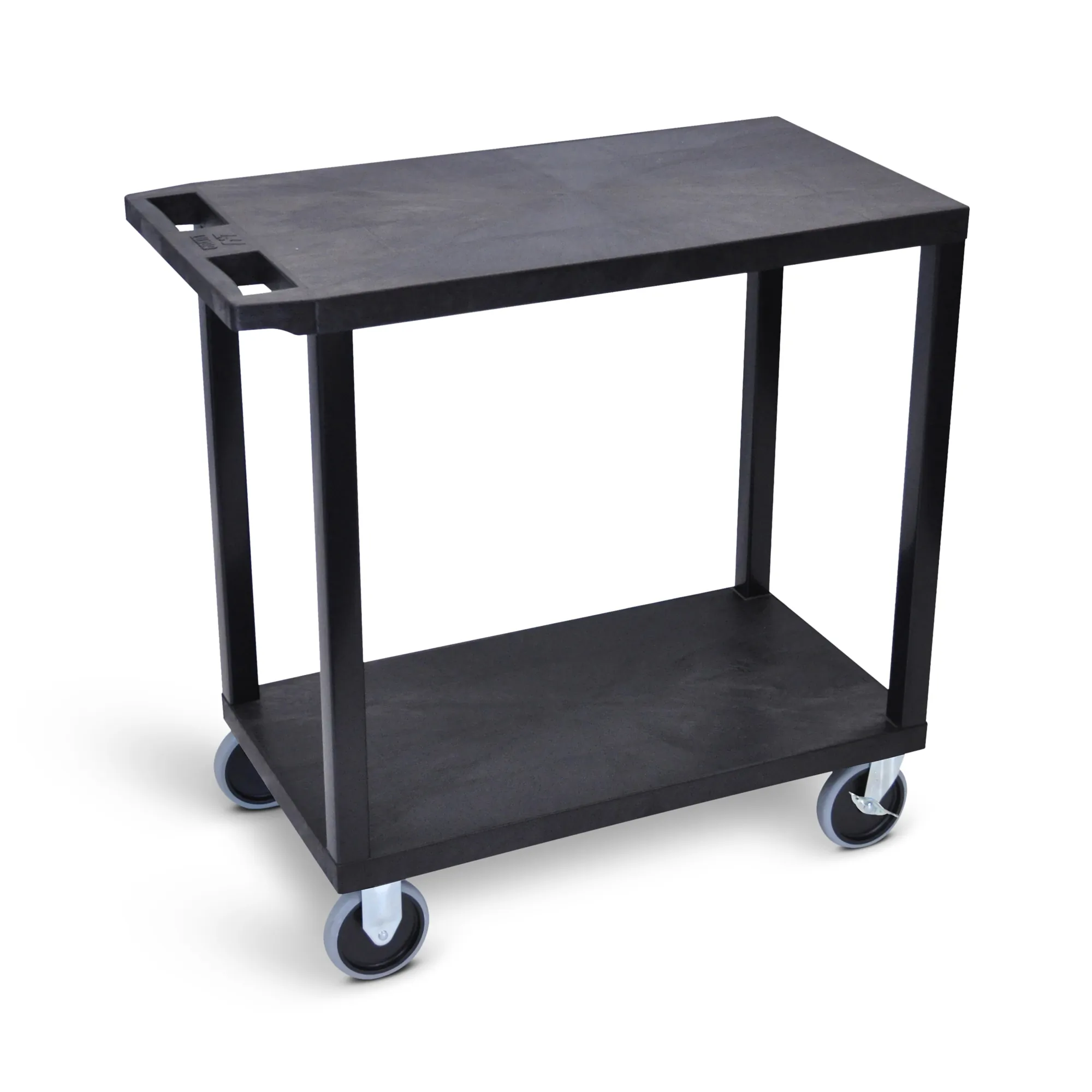 The two flat shelves are made of injection-molded thermoplastic, ensuring they won't stain, scratch, dent, or rust. With a spacious 25" clearance between shelves, accessing items is hassle-free.