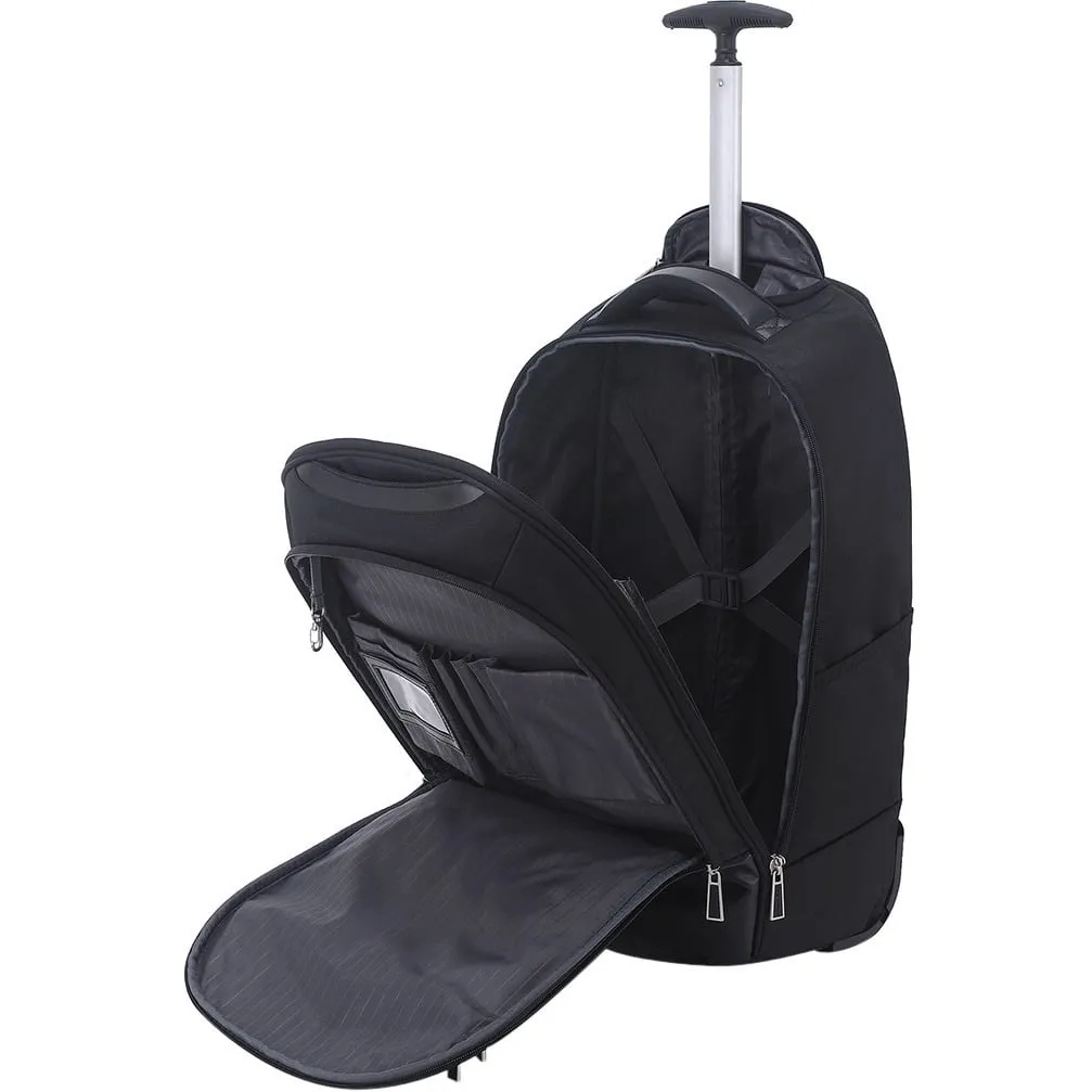 This versatile bag easily transitions from a rolling case to an ergonomic backpack for ultimate convenience. The front workstation includes a key fob, business card holder, cell phone pocket, and dedicated storage for pens and pencils, along with a zippered mesh pocket for your valuables.