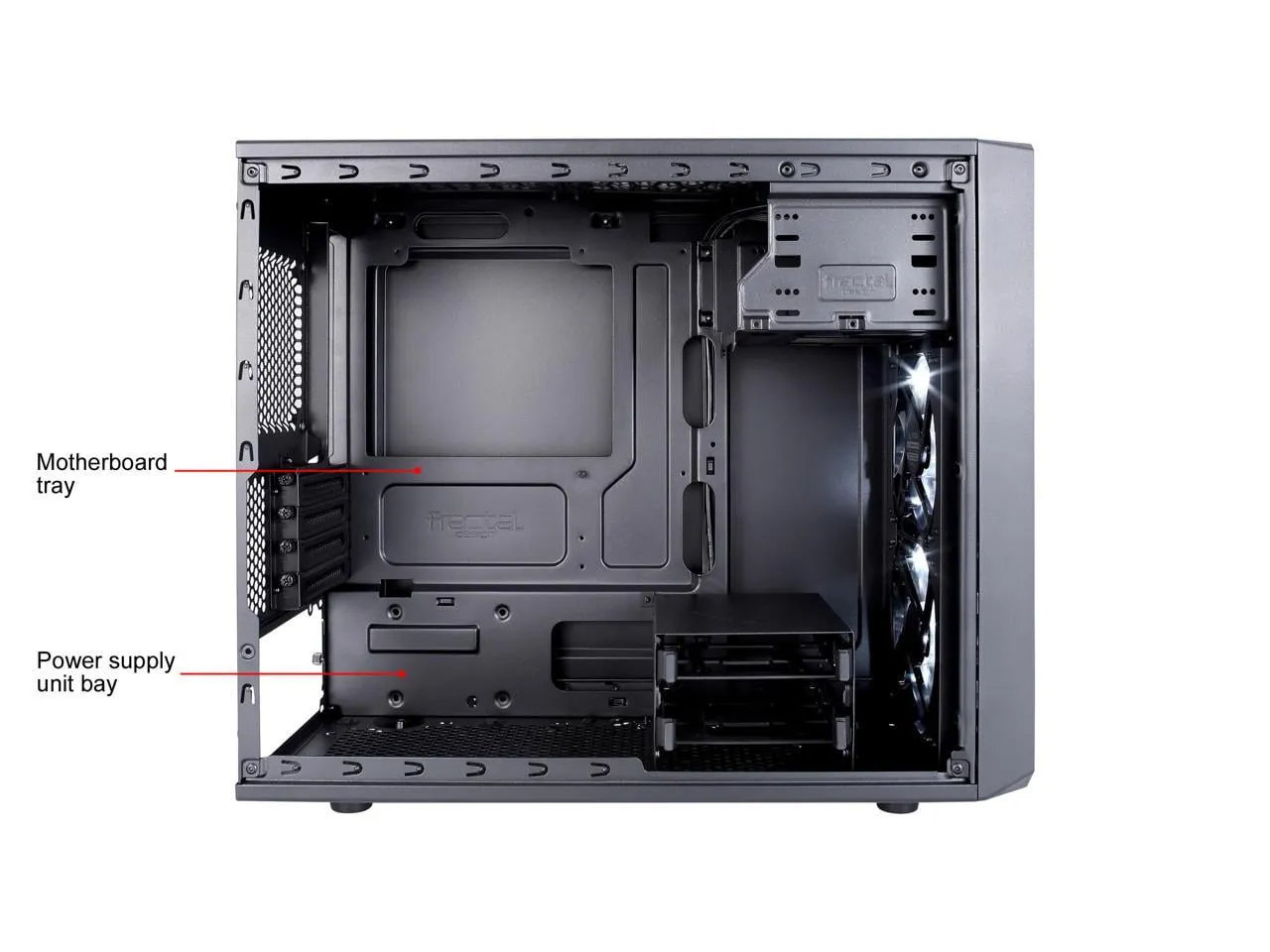 The new Focus G Mini from Fractal Design is the cornerstone for your PC build, showcasing the hardware at the heart of your system with elegant accents and sophisticated style.Its intelligently designed Micro ATX layout offers a massive choice of conflict-free hardware combinations including high profile CPU coolers, up to two dual-fan radiators, full-length graphics cards and expansive storage.The Fractal Design Focus series hits the mark for discerning the PC enthusiast seeking an aggressively priced chassis that stands out from the competition.