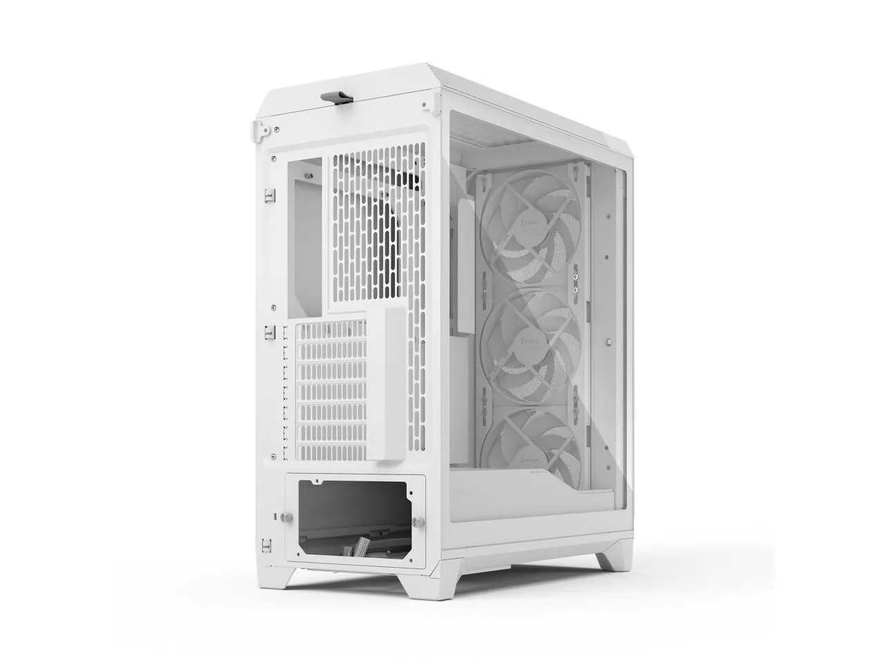 The Fractal Design Meshify 3 is a high-performance mid tower PC case designed for efficient airflow and versatility. With its striking white chassis and clear tempered glass side panel, it offers a sleek appearance while showcasing your components. The case supports a variety of motherboard sizes, including ATX and mATX, making it suitable for a broad range of builds. Its spacious interior allows for easy cable management and installation of components.