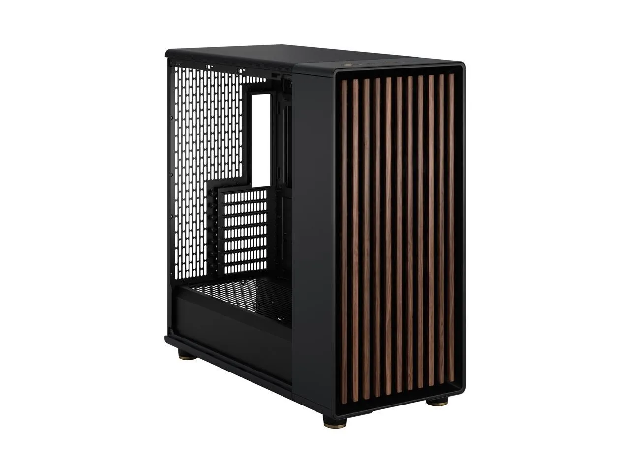 North XL offers a transformative take on the gaming PC case in a generous form factor. With fine-patterned mesh ventilation and an open front featuring FSC-certified walnut or oak panels, the design of North XL makes it a stylish addition to any living space while helping components stay cool. The design is complemented by sleek brass or steel details and an integrated tab for easy access to the top of the case. Inside, it boasts a spacious, flexible, and intuitive interior layout so you can make the most of your building aspirations and gaming experience.