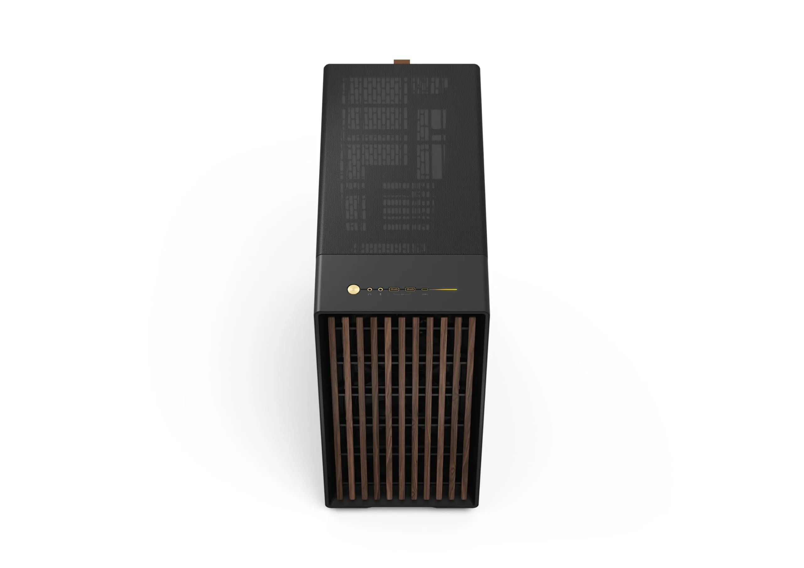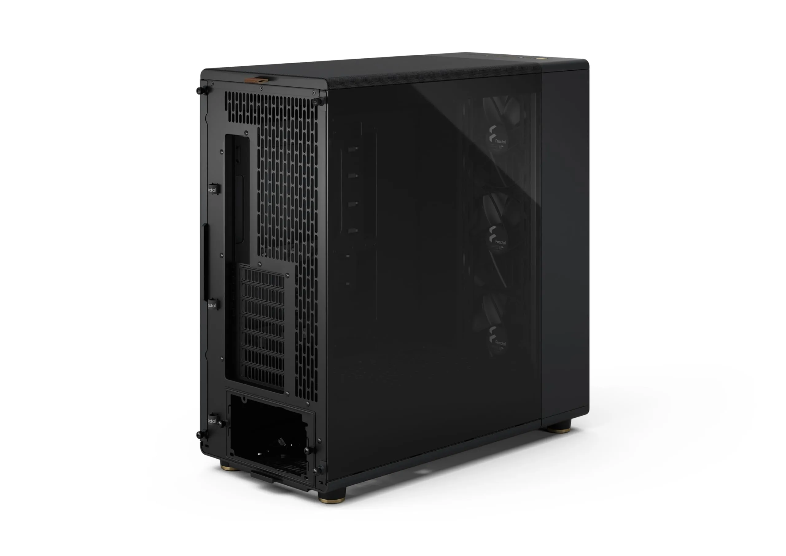 The Fractal Design North XL is a stylish and spacious full tower PC case designed to accommodate ATX and mATX motherboards with unique rear connectors. Its elegant charcoal black chassis with a walnut front panel offers a modern look for any setup. The dark tinted tempered glass side panel allows for an impressive view of your internal components, perfect for showcasing your build.