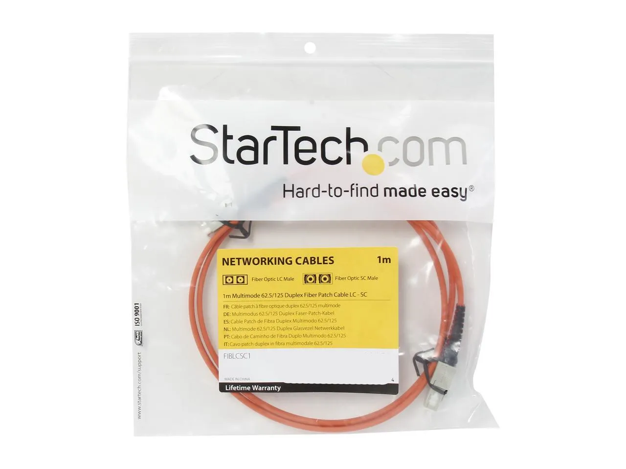 The FIBLCSC1 1-meter (3.2ft) Multimode 62.5/125 Duplex Fiber Patch Cable is terminated with one LC (male) connector and one SC (male) connector, to provide the necessary connection between fiber networking devices for high-speed, long distance networks.
