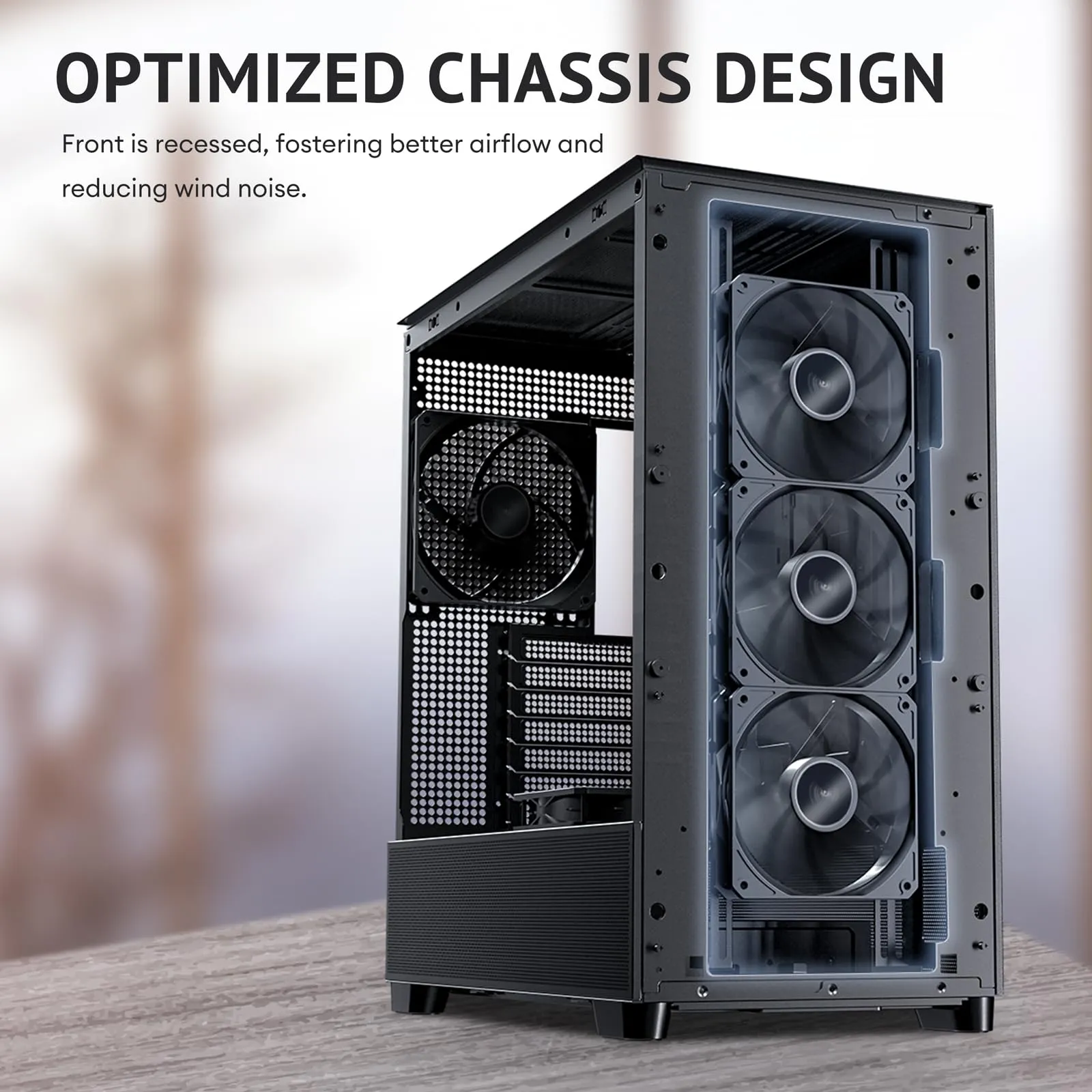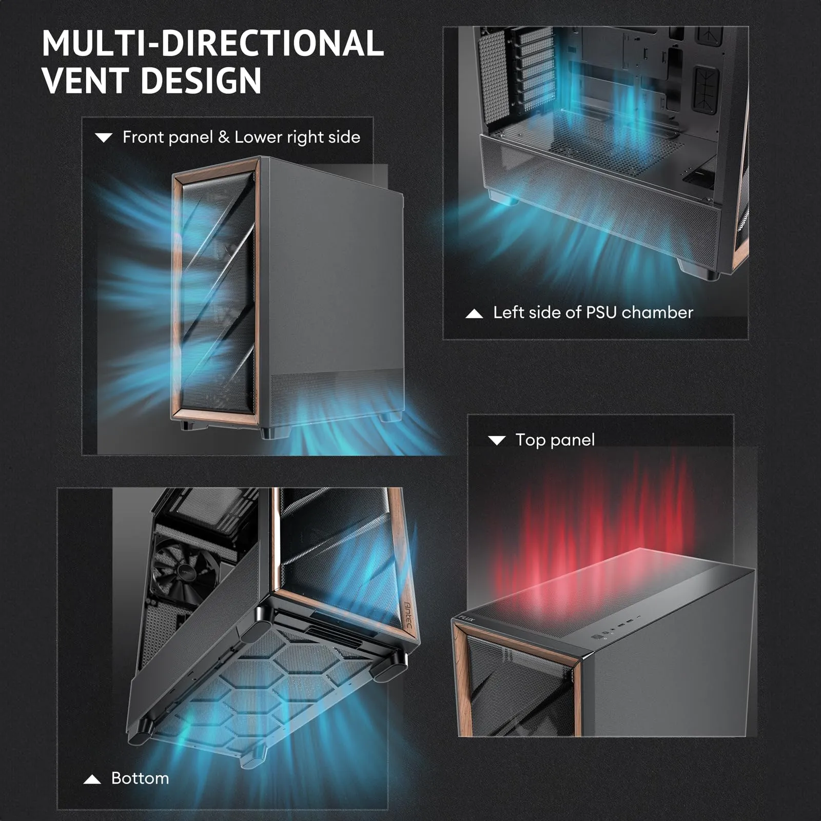 The iron mesh panels ensure optimal thermal performance, while the wood frame adds a touch of elegance to your gaming rig. With 5 PWM fans included, you can enjoy efficient cooling and a stylish look.