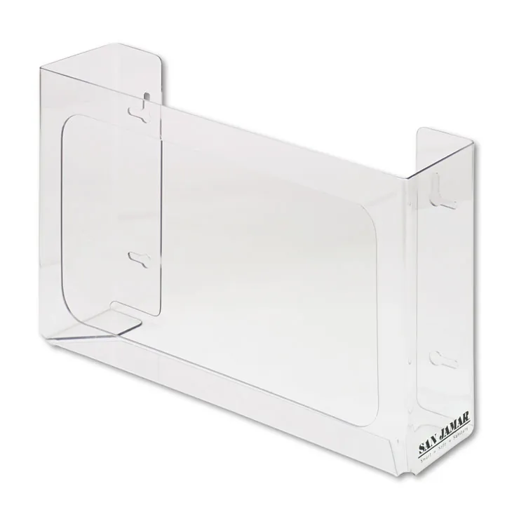 This Clear Plexiglas Disposable Glove Dispenser is designed for easy access and organization of gloves. With a three-box capacity, it measures 18 inches wide, 3.75 inches deep, and 10 inches high, making it a practical solution for busy workspaces.
