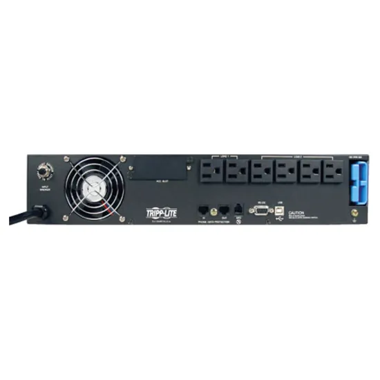 1500VA online, double-conversion UPS system for critical server, network and telecommunications equipment. Full-time sine wave 100, 110 or 120V output with +/-2% voltage regulation. Operates continuously without using battery power during brownouts to 65V and overvoltages to 150V. Network management interfaces support simultaneous communications via USB port, DB9 serial port and SNMPWEBCARD slot. Built-in DB9 port offers both enhanced RS-232 enabled monitoring data, plus contact closure monitoring ability. HID-compliant USB interface enables integration with built-in power management and auto shutdown features of Windows and Mac OS X. 3-stage metered current monitoring and battery charge status LEDs. Dataline surge suppression for dialup, DSL or network Ethernet connection. 4-post rackmount accessories included; 2-9USTAND tower kit and 2POSTRMKITWM 2-post rack & wallmount accessories available. Field-replaceable, hot-swappable internal batteries and external battery packs.