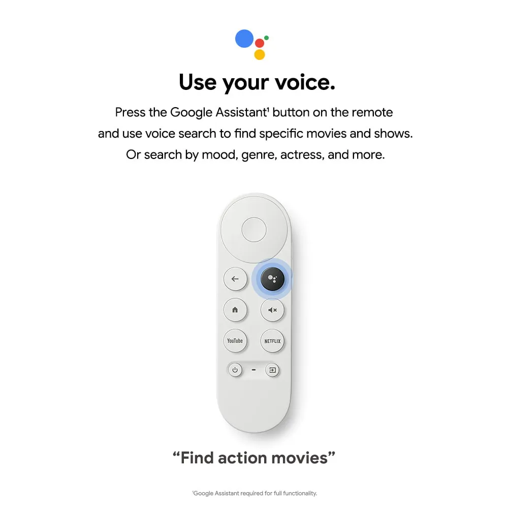 ENJOY HDR 4K UHD CONTENT FROM YOUR FAVORITE APPS AND MOBILE DEVICES WITH THE SNOW GOOGLE CHROMECAST WITH GOOGLE TV. IT PLUGS INTO THE HDMI PORT ON YOUR DISPLAY AND CONNECTS TO YOUR WI FI NETWORK TO PROVIDE ACCESS TO A VARIETY OF APPS VIA THE ONBOARD ANDROID TV OPERATING SYSTEM. IT SUPPORTS 4K UHD 3840 X 2160 RESOLUTION AT 60 HZ AND THE HDR10, HDR10+, AND DOLBY VISION HDR FORMATS TO PROVIDE A VIBRANT, DETAILED IMAGE ON COMPATIBLE DISPLAYS. THE GOOGLE ASSISTANT IS BUILT IN TO PROVIDE SIMPLE VOICE SEARCHING WITH THE INCLUDED VOICE REMOTE CONTROL.