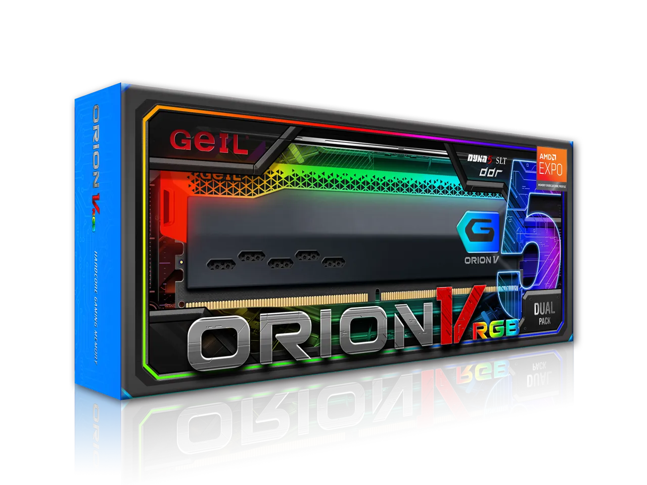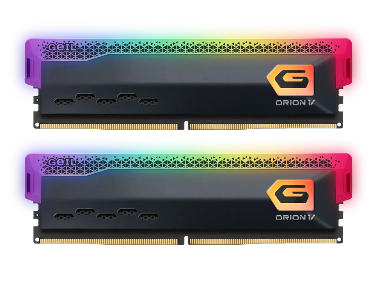 The GeIL ORION RGB memory kit offers outstanding performance and stunning aesthetics. This 32GB kit consists of two 16GB modules, designed for high-speed applications with a frequency of 6000MHz (PC5 48000). The memory features full RGB lighting, allowing for customization to match your build’s theme.