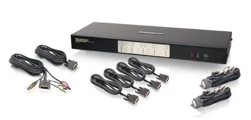 4PORT DVI KVM SWITCH W/ AUDIO USB 2.0 HUB & CABLES TAA COMPLIANT