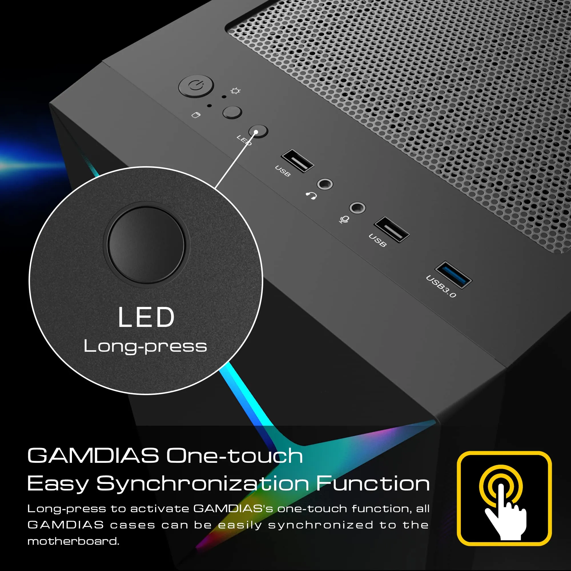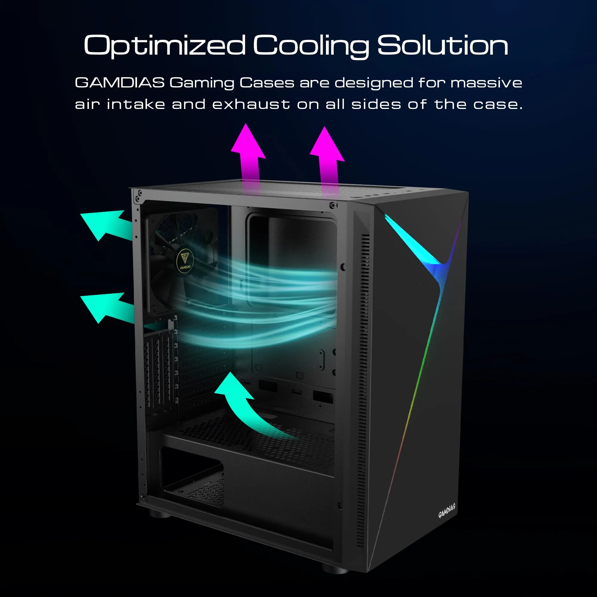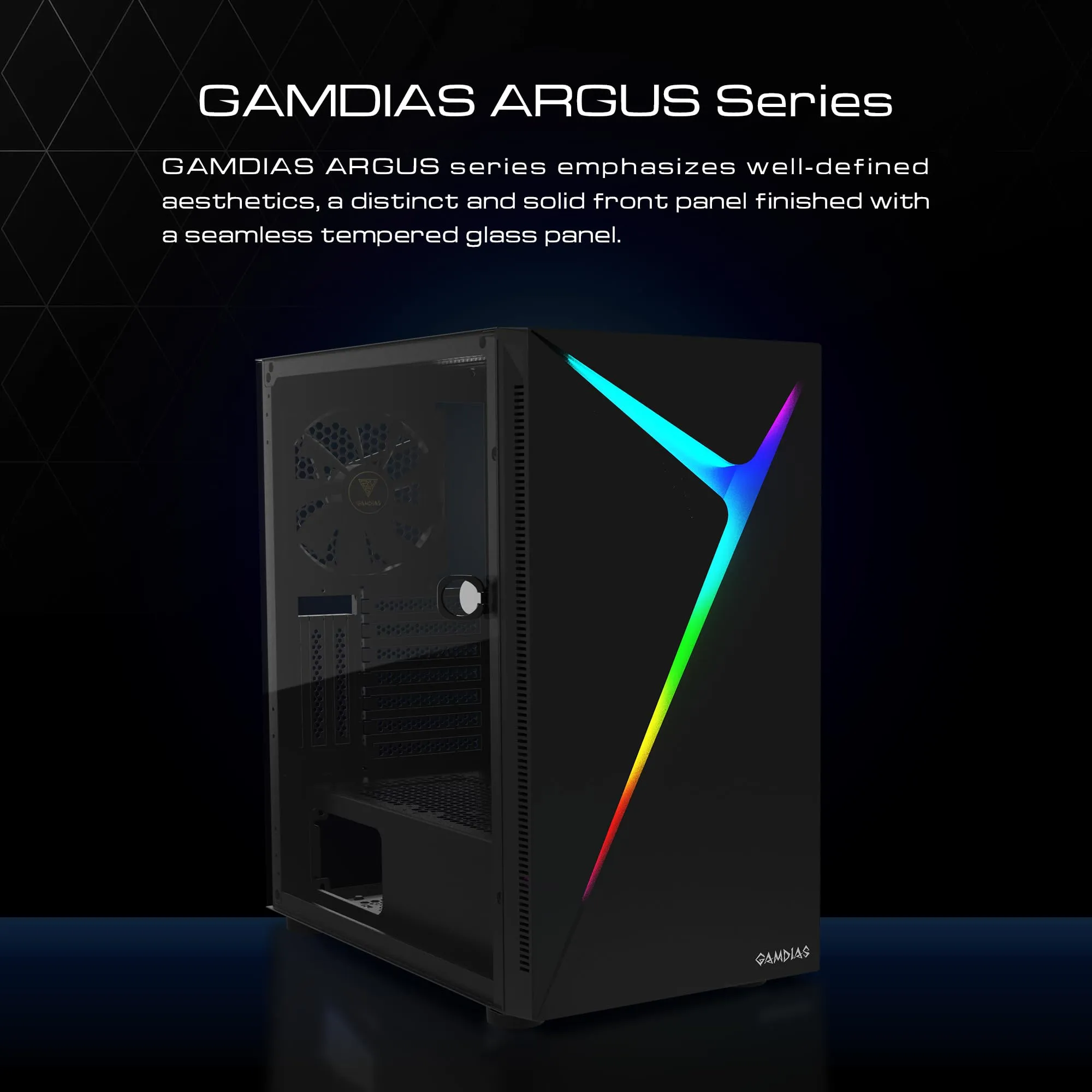 The GAMDIAS GD-ARGUS E4 Elite is a stylish and functional ATX mid tower gaming case designed to enhance your gaming setup. With its elegant tempered glass swing door and customizable ARGB lighting, this case provides great aesthetics and functionality. The spacious interior supports various components, ensuring ample room for your gaming rig.
