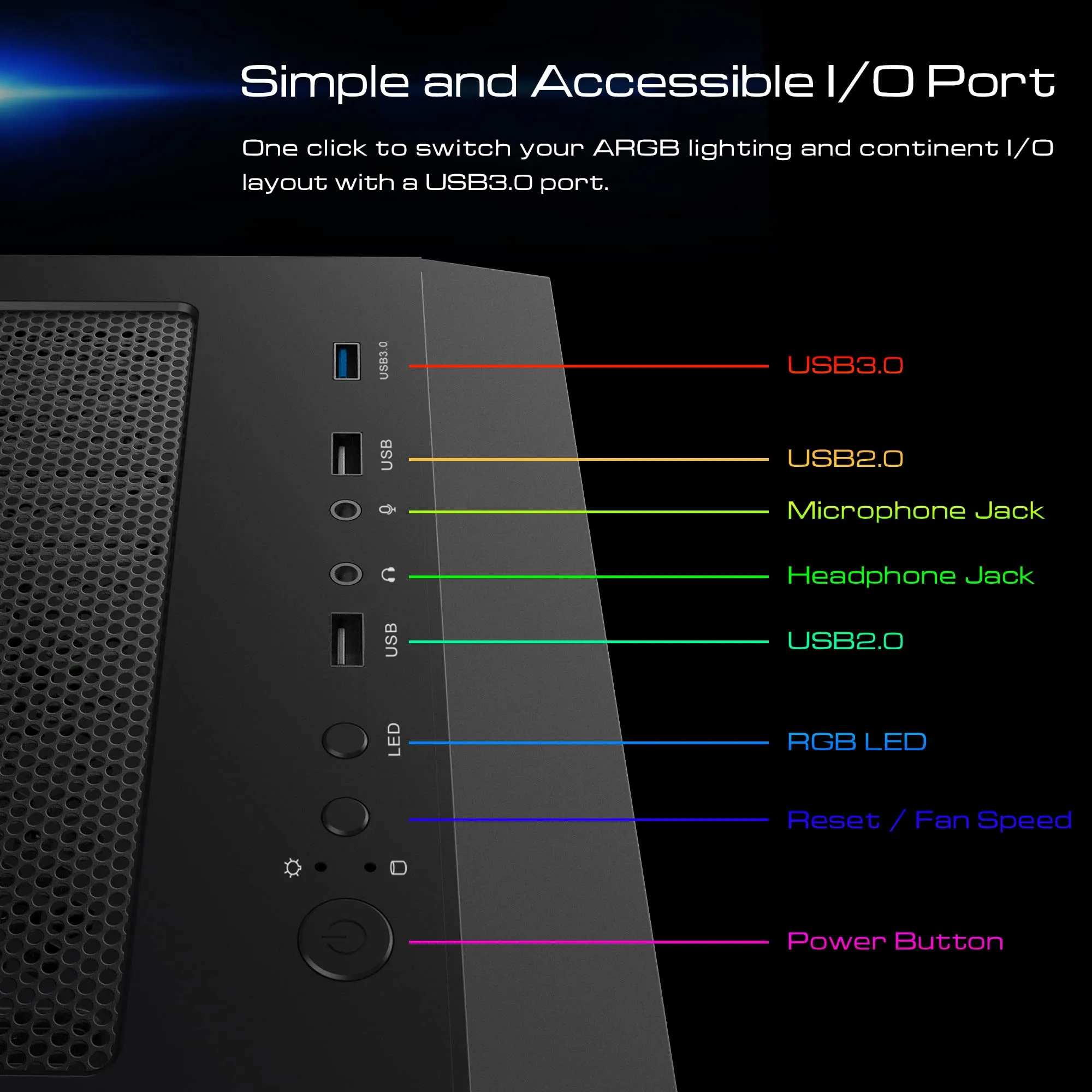 Equipped with a single 120mm ARGB fan and a front panel sync feature, you can easily synchronize with your motherboard for a complete lighting experience. Additionally, it offers vertical PCIe slots to showcase your graphics cards beautifully.