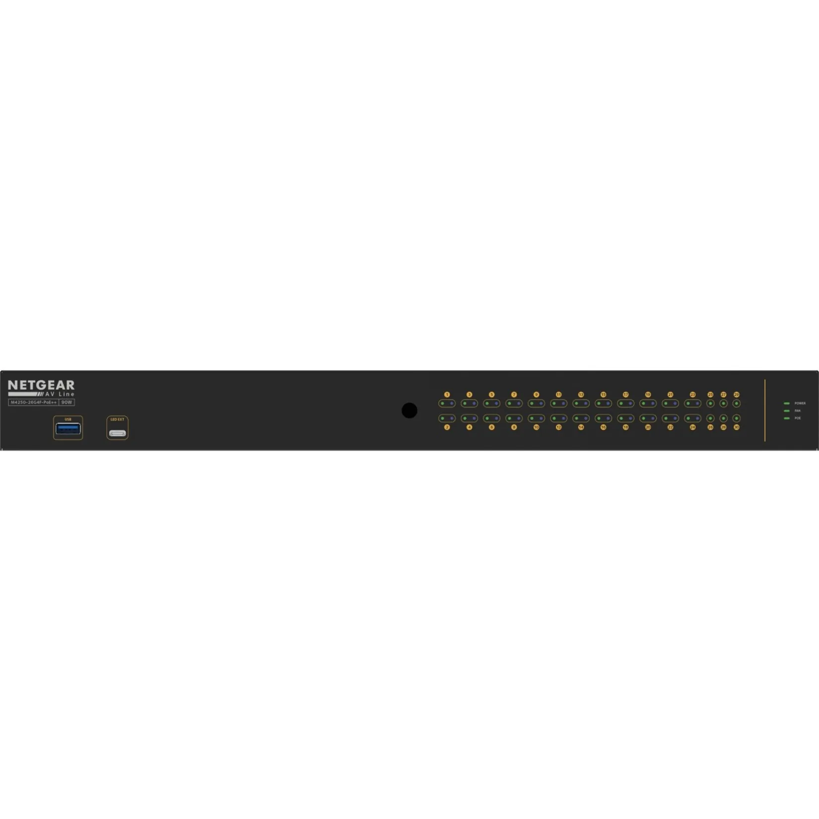 Netgear M4250 26G4F POE++MNGD SWITCH - The M4250 series ranges from 8 to 48 ports with a variety of PoE, PoE+ and Ultra90 PoE++ options. In addition, uplink options include 1G for audio installations or standalone video installations as well as 10G uplinks for larger scale video deployments. The M4250 series also includes 12-port multi-Gigabit Ethernet and 16-port 1G/10G fiber models for plug-and-play aggregation in a totally automated star topology.