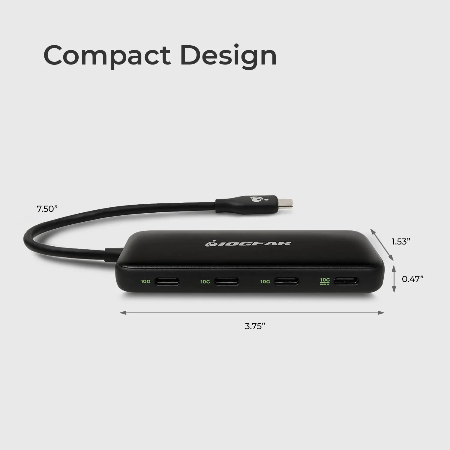 IOGEAR 4 Port USBC Hub, USB 3.2 Gen 2, 10Gbps, 100W Power Delivery, High Speed Data Transfer, Windows, macOS, GUH3C4C
