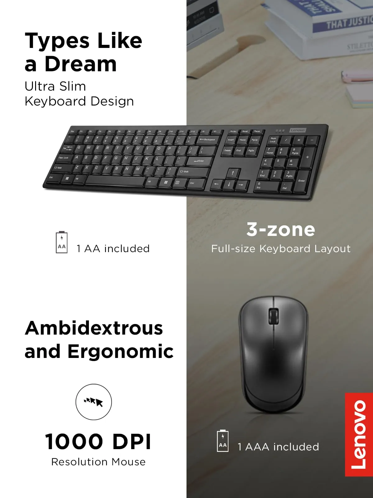 The Lenovo 100 Wireless Keyboard and Mouse Combo provides a seamless and enjoyable experience for both casual and professional use. Designed for comfort and ease of use, this combo offers a reliable wireless connection, ensuring you stay connected without the hassle of cables.