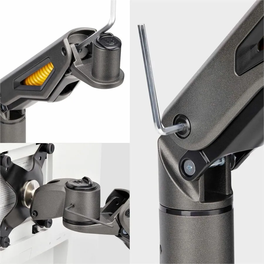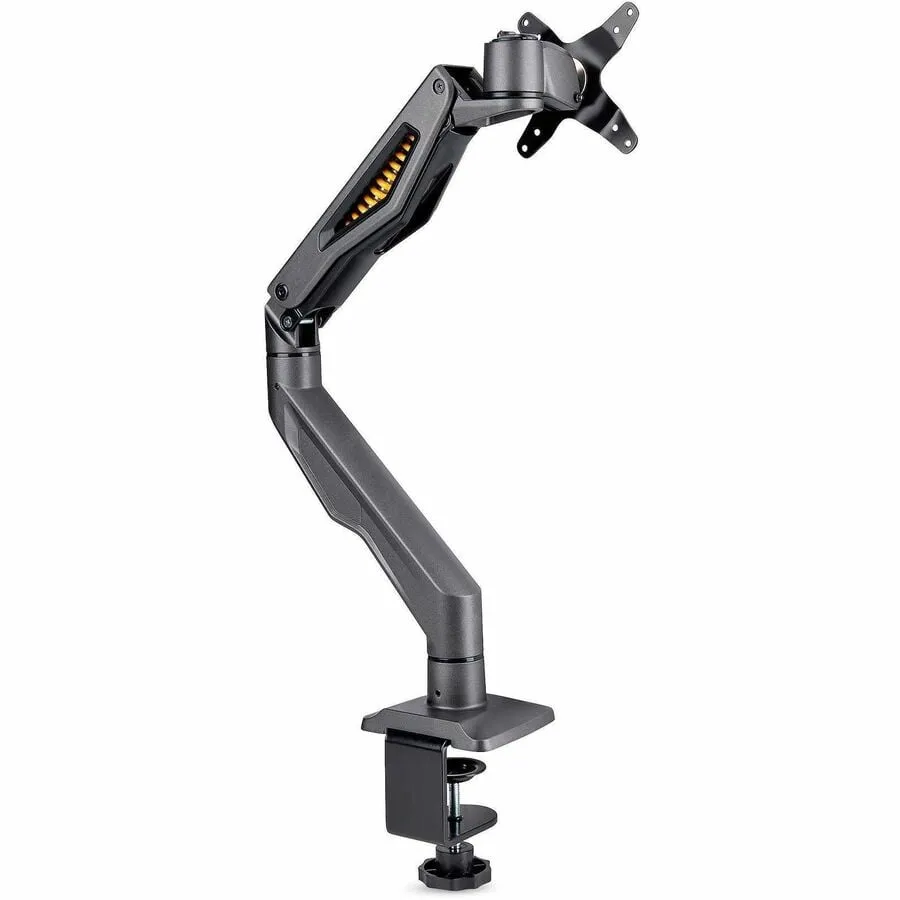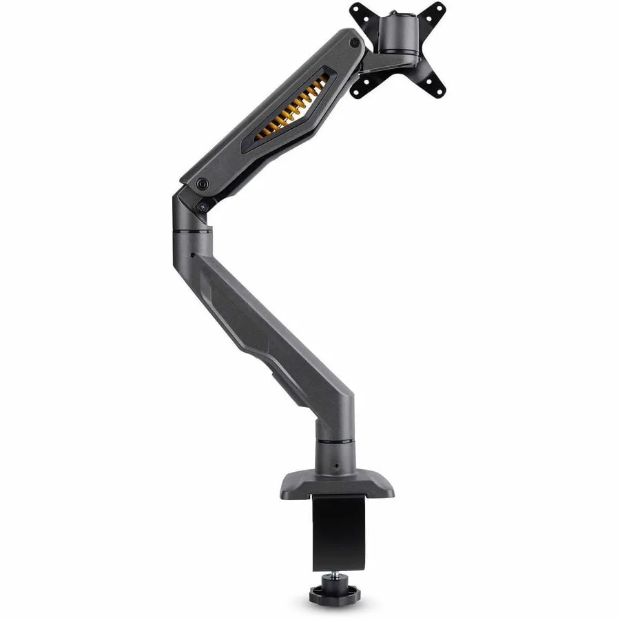 Monitor desk mount for up to 32-inch display; VESA 75x75/100x100; Total 22lb/10kg - Mechanical spring-assisted articulating arm; Premium monitor arm ships pre-assembled - Slide-and-attach C-clamp design; Max desk thickness 2.3-inches (6cm) - Toolless ergonomic VESA mount w/ +/-15 swivel, +65/-15 tilt, 360 screen rotation for portrait/landscape - Max arm extension 22.6in (57.4cm); Height range 7.9-20.8in (20.2-52.9cm) - Computer monitor mount w/ cable management underneath arms.