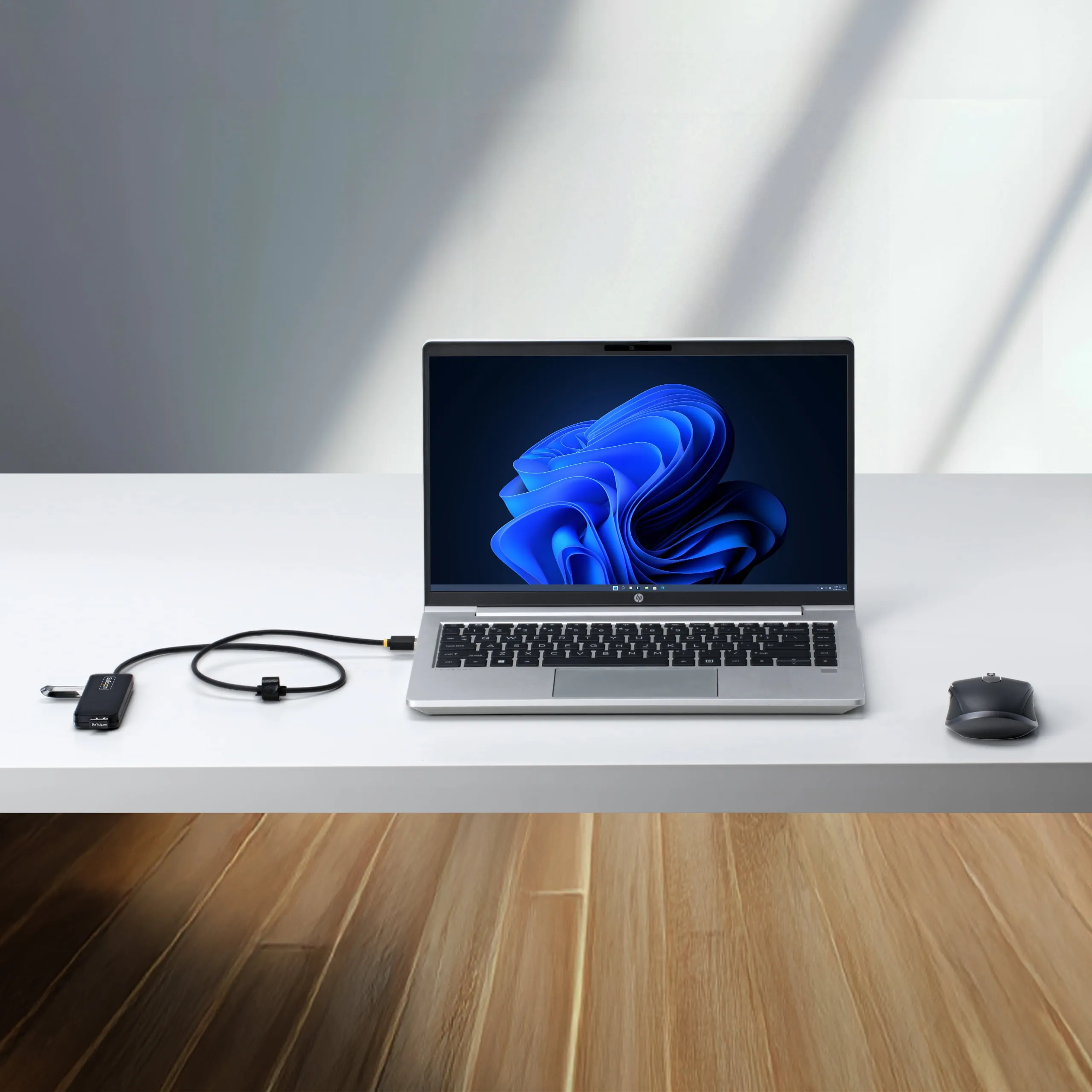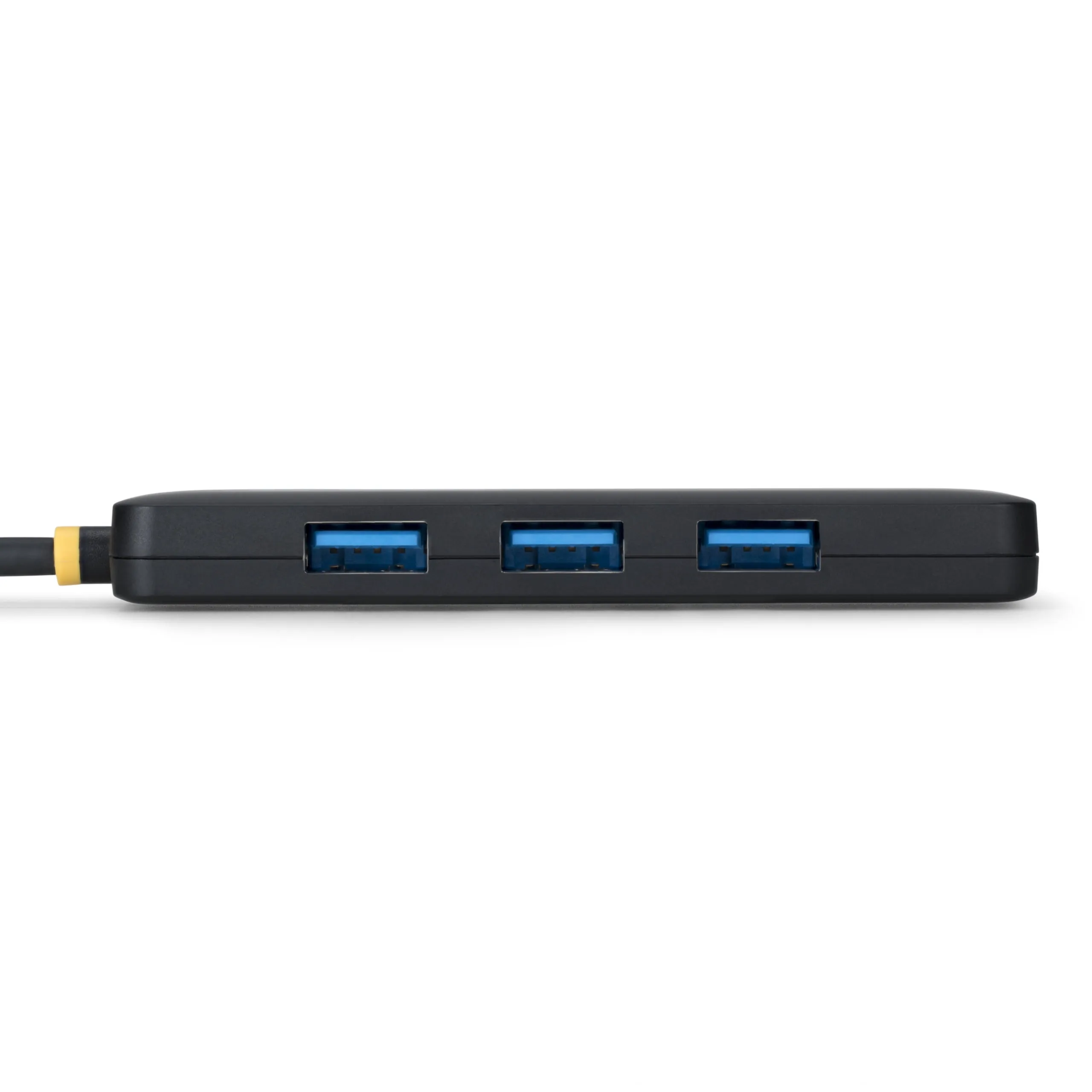 - Bus-powered USB 3.0 expansion hub with PCR plastic housing and built-in USB-A host cable connects up to four USB devices to a computer with a single USB-A port - Support for 5Gbps - Plug-and-play installation - Works on all operating systems including Windows/macOS/Linux/ChromeOS - Hook and loop tie prevents tangles - Three ports on one side and one on the end for easy access when connecting and disconnecting devices