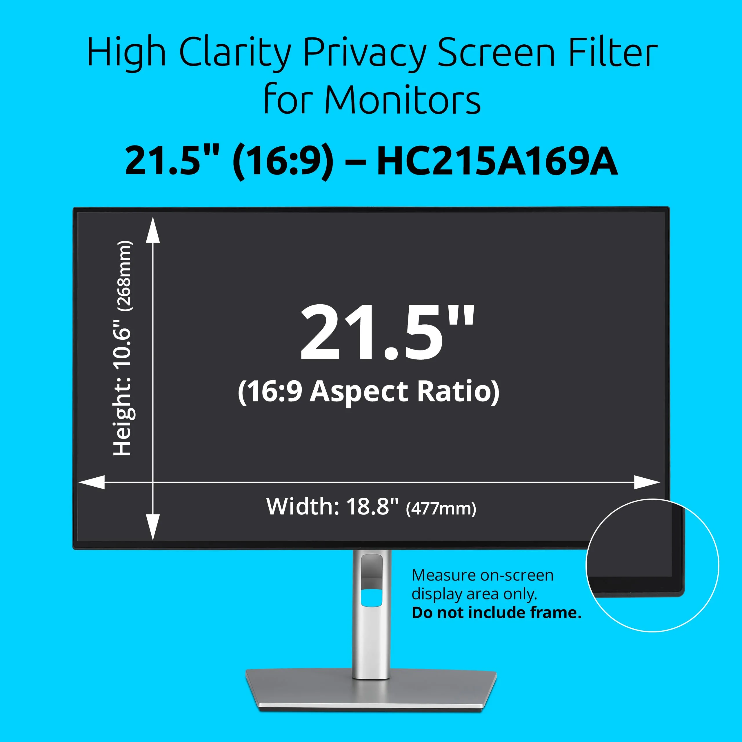 This high clarity privacy screen filter is designed specifically for 21.5-inch monitors with a 16:9 aspect ratio. It effectively reduces side viewing angles to ensure that onlookers cannot see your screen, protecting sensitive information and providing additional privacy.