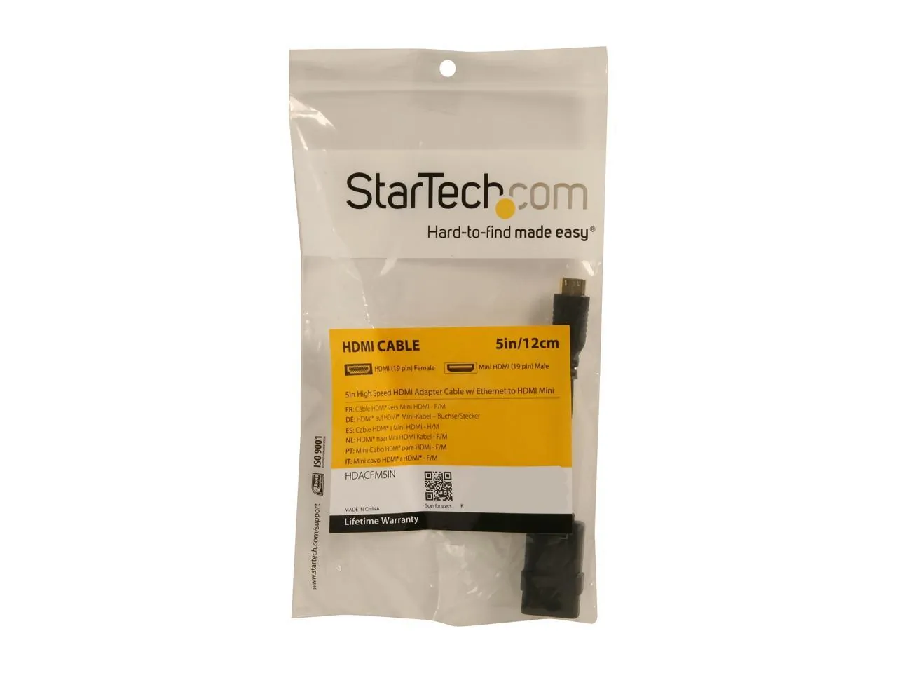 StarTech.com HDACFM5IN Black Connector A: 1 - HDMI (19 pin) Female Connector B: 1 - Mini HDMI (19 pin) Male 5in High Speed HDMI Cable - HDMI to HDMI Mini- F/M