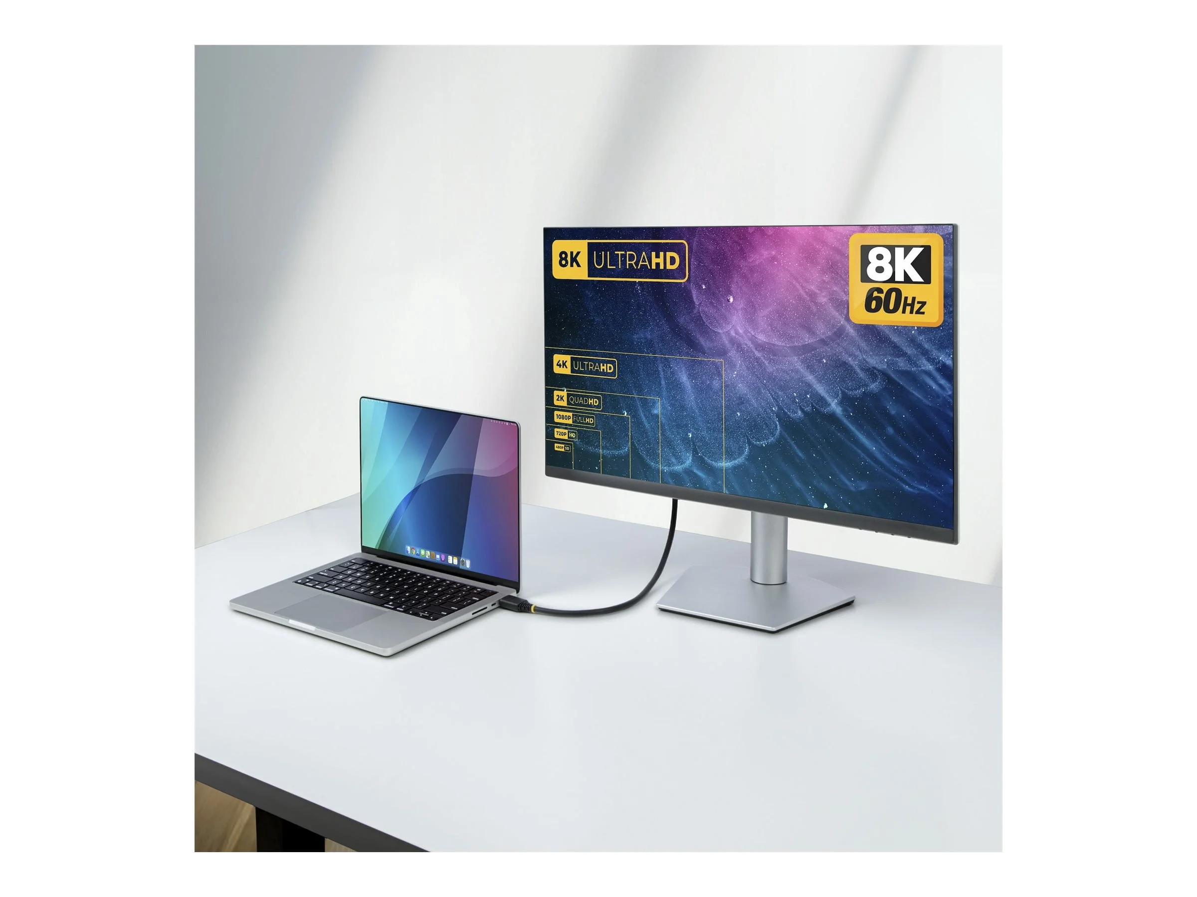Certified HDMI 2.1 Cable delivers 8K 60Hz 4K 120Hz video w HDR10+ and Dolby Vision; Immersive sound quality with 7.1 TrueHD eARC Dolby Atmos DTS:X Certified Ultra High Speed HDMI for full HDMI 2.1 performance and backward compatibility; Up to 48Gbps for stable 8K transmission Connector markings for easy identification; Routes easily around corners with a flexible TPE jacket and 30mm min bend radius Compatible w USB C to HDMI adapters for desktops Apple M-series AirPro/Max MacBooks