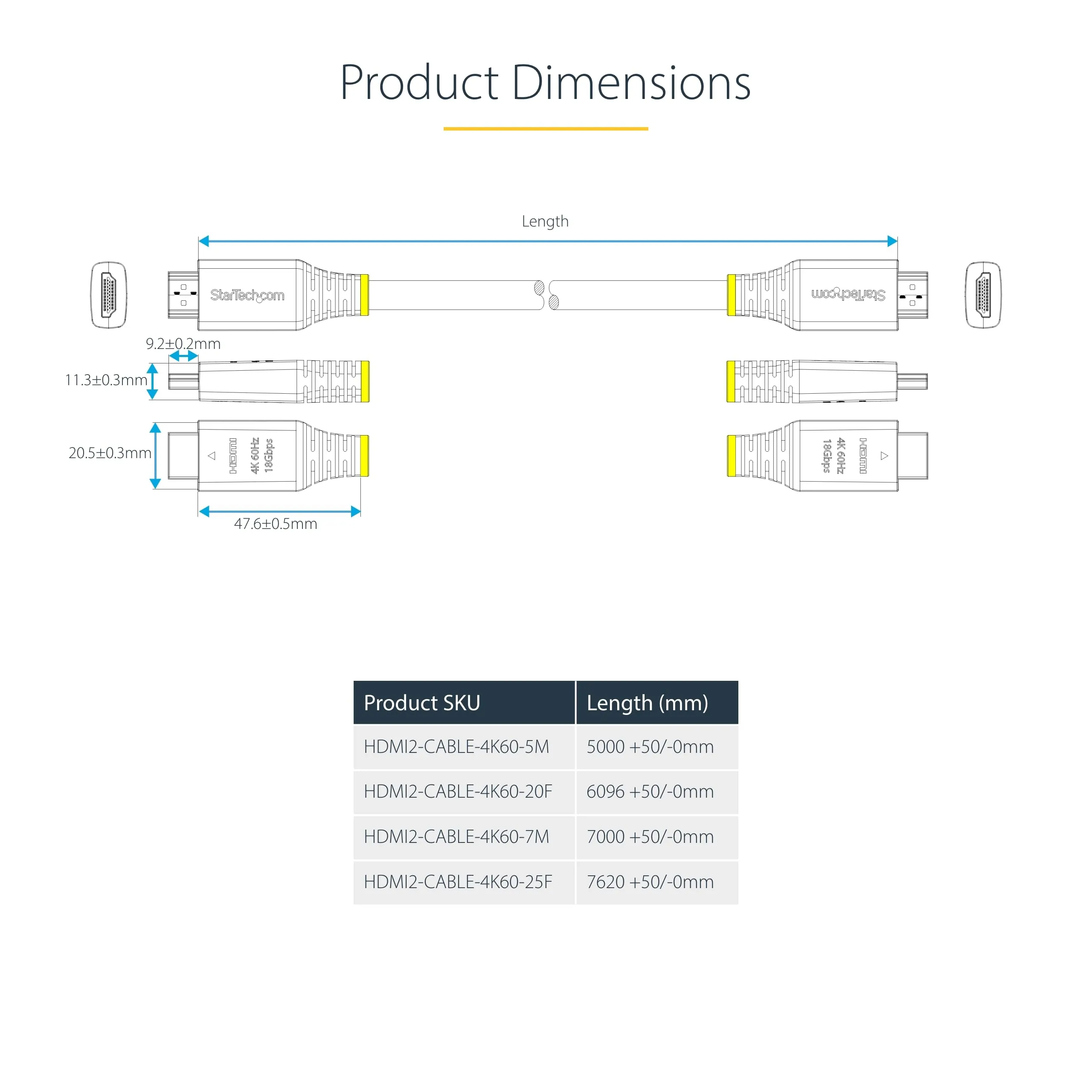 Connect this Premium Certified High Speed HDMI Cable to UHD-enabled HDMI devices; Use connector markings to quickly identify specs at-a-glance - Supports 4K 60Hz video with High Dynamic Range (HDR10); Certified HDMI for guaranteed compatibility - Ideal for 4K TVs/monitors/docking stations; TPE jacket w/braided shield - Black; 25-foot (7.6-meter); HDMI 2.0 w/HDR10/HDCP 2.2/ARC; 18Gbps; 4K 60Hz/1440p 144Hz/1080p 120Hz; 32-ch Audio; Compatible w/HDMI 1.4; 24AWG; 9.0mm (0.35in) O.D.