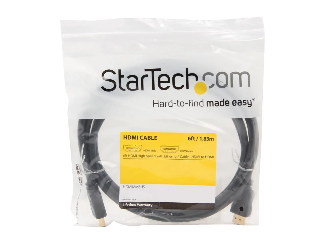 StarTech.com HDMIMM6HS 6 ft. Black High Speed HDMI Cable with Ethernet Male to Male