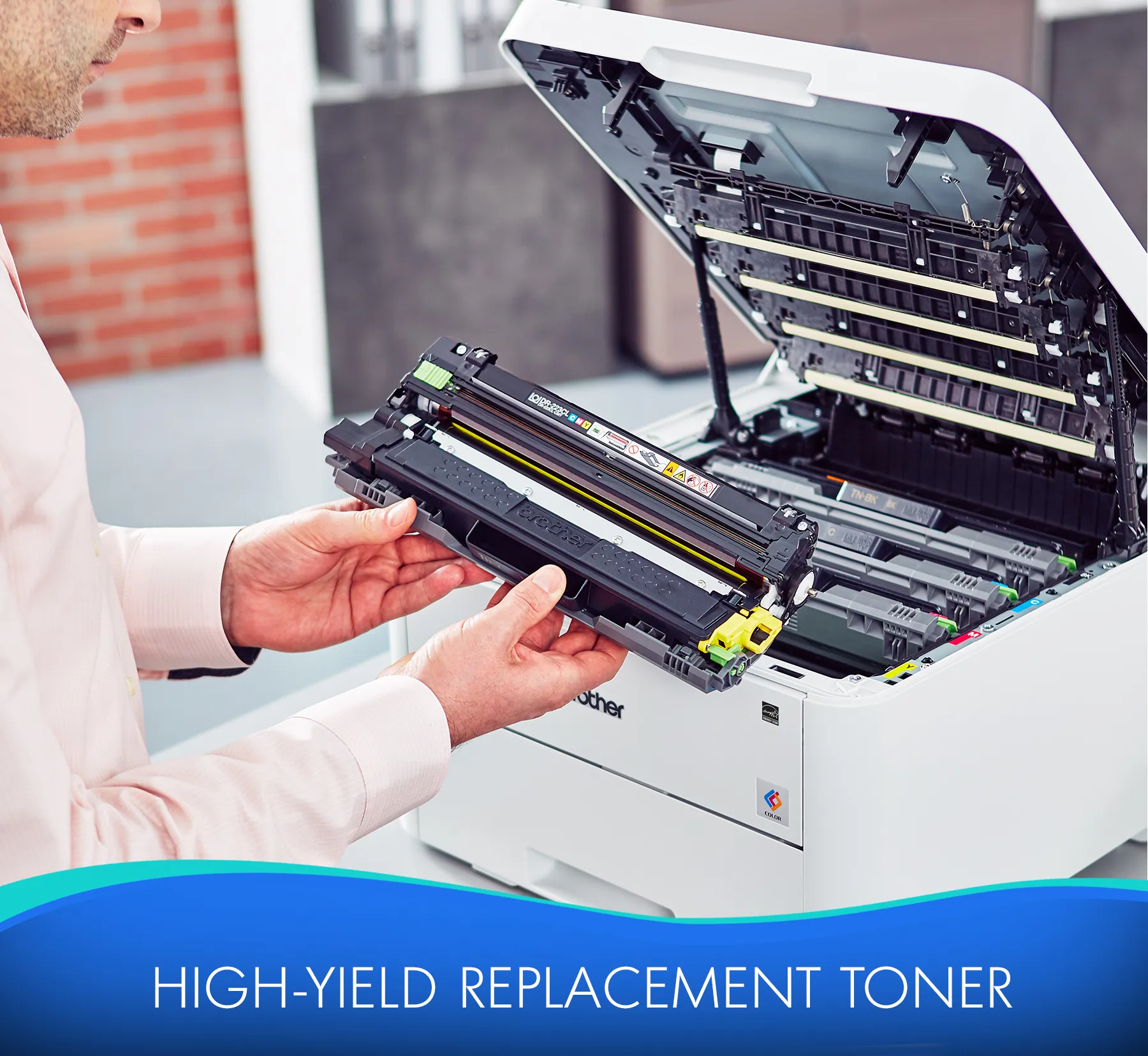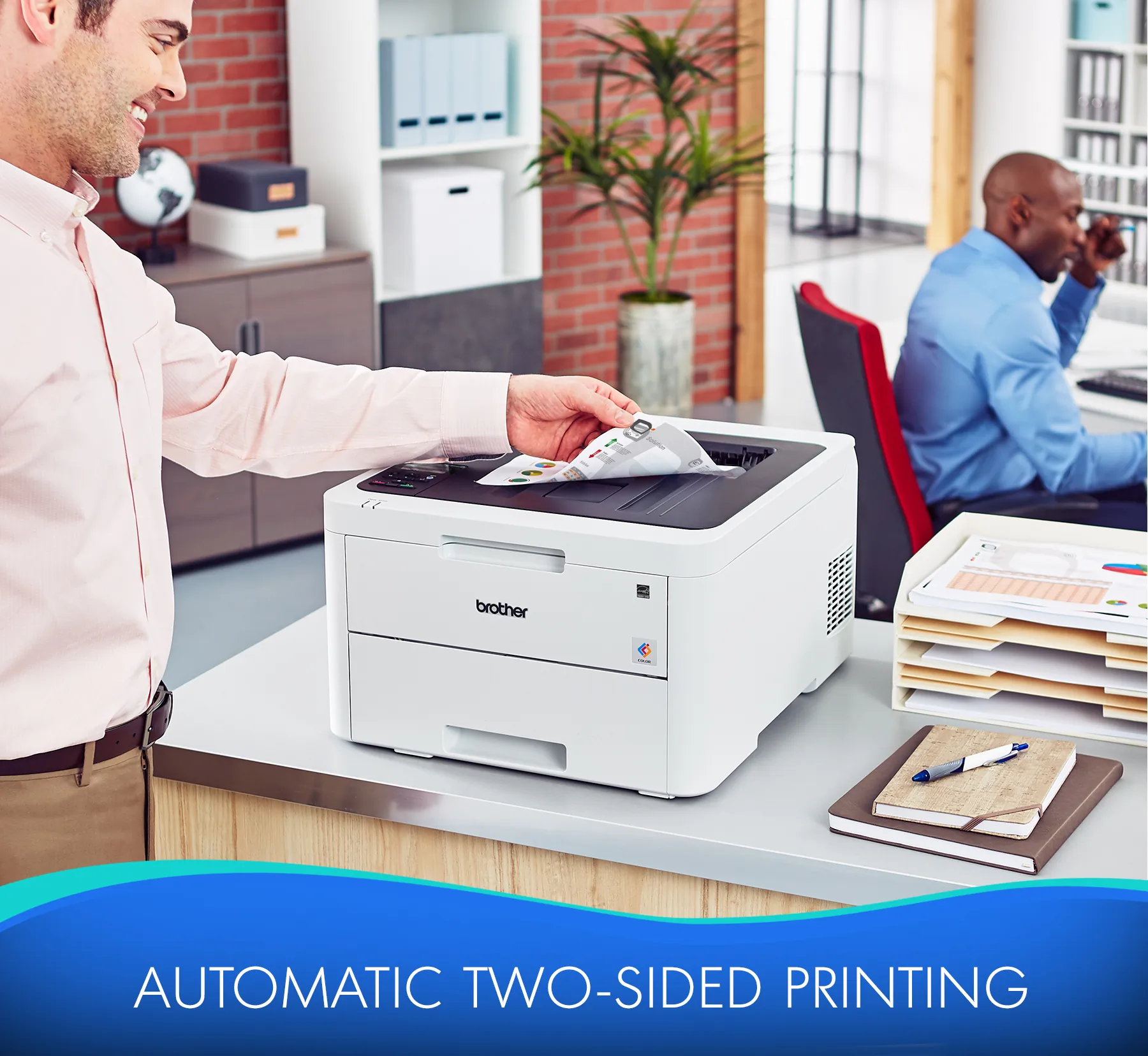 Digital color printer offers quick print speeds up to 25 pages per minute to accommodate the varied printing needs for busy home or small offices. Manual feed slot can handle a variety of paper sizes and types, including cardstock, envelopes and more. Connect with versatile options including built-in wireless, Ethernet or USB interfaces and print wirelessly from mobile devices. The 250-sheet capacity, adjustable paper tray helps improve efficiency with fewer refills and handles letter-size or legal-size paper. Automatic two-sided printing helps save on paper costs. Plus, it's compatible with Brother Genuine high-yield replacement toner cartridges (sold separately) to help minimize your printing costs.