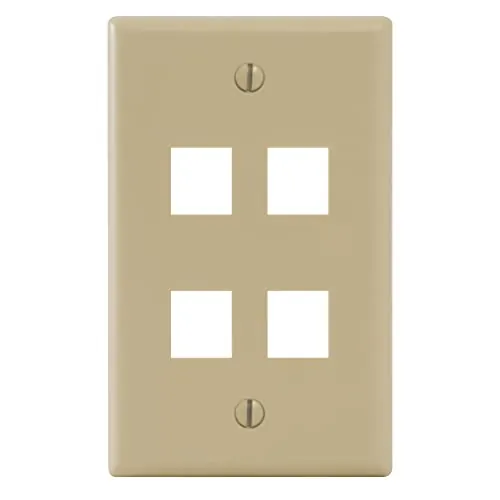 - Faceplate- 4 Port- Single gang- Port fits all ICC jacks and modules- Easy snap-in port design-Contemporary design- Ivory