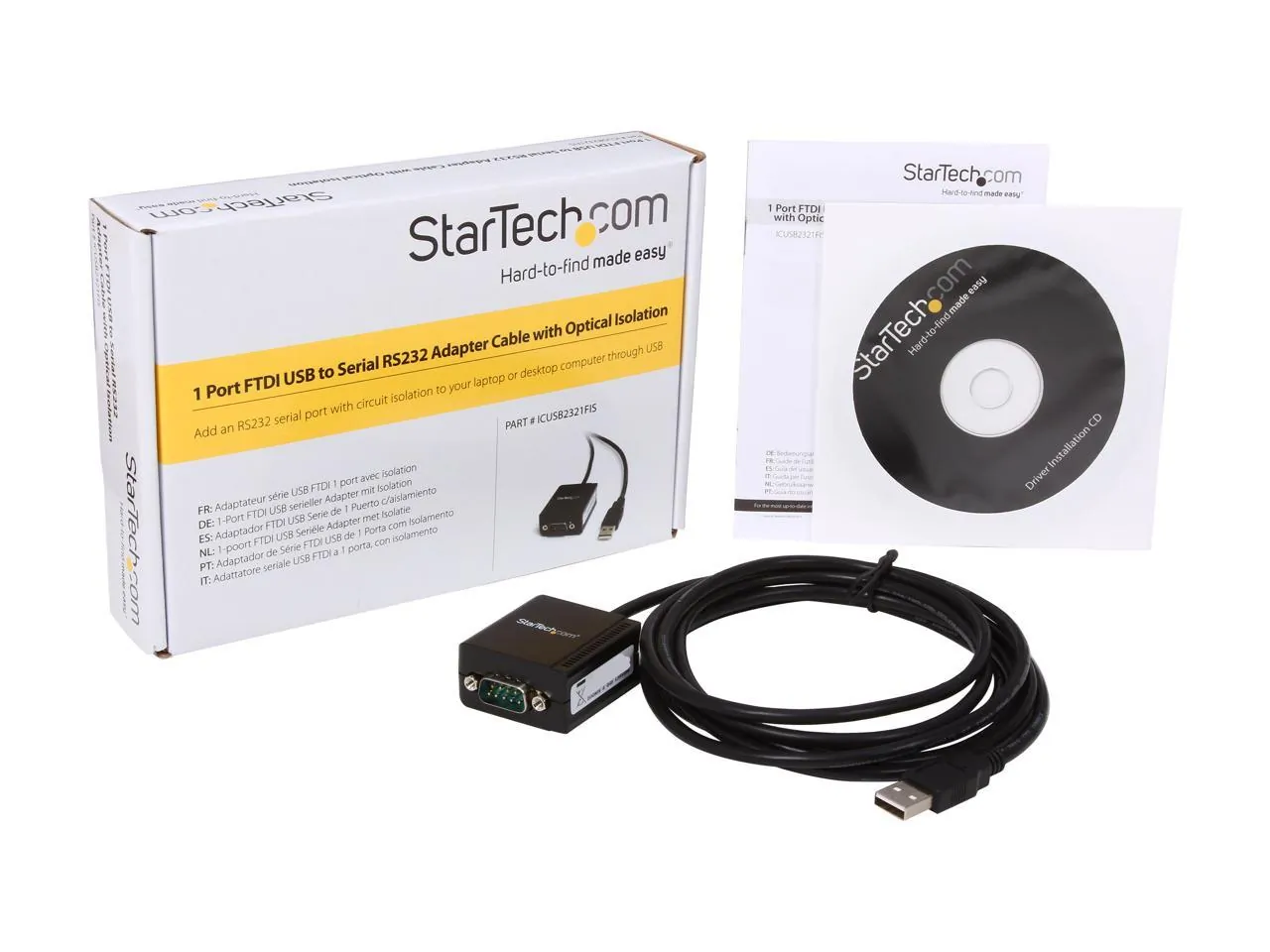 1 Port FTDI USB to Serial RS232 Adapter Cable with Optical Isolation Add an RS232 serial port with circuit isolation to your laptop or desktop computer, through USB.