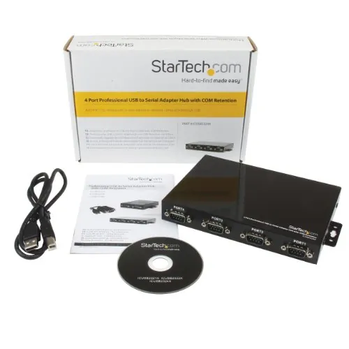 USB to Serial Adapter Hub - 4 Port - Wall Mount - COM Port Retention - Texas Instruments - USB to RS232 Adapter - 1 x Type A Female USB 1.1 USB