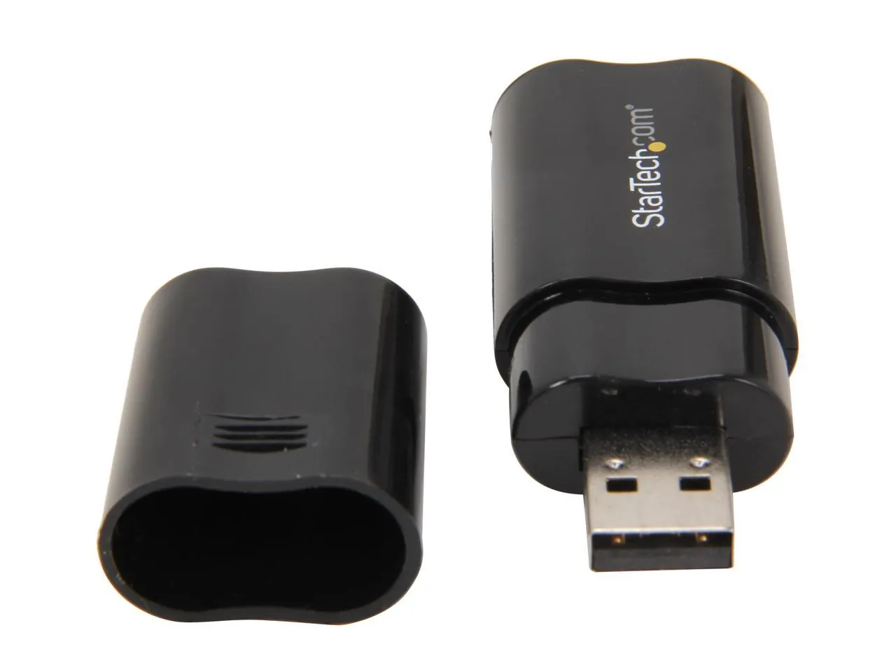The StarTech USB Audio Adapter allows you to add audio input and output capabilities through USB. This compact and portable black adapter is perfect for connecting your headphones or speakers to any USB-enabled device.