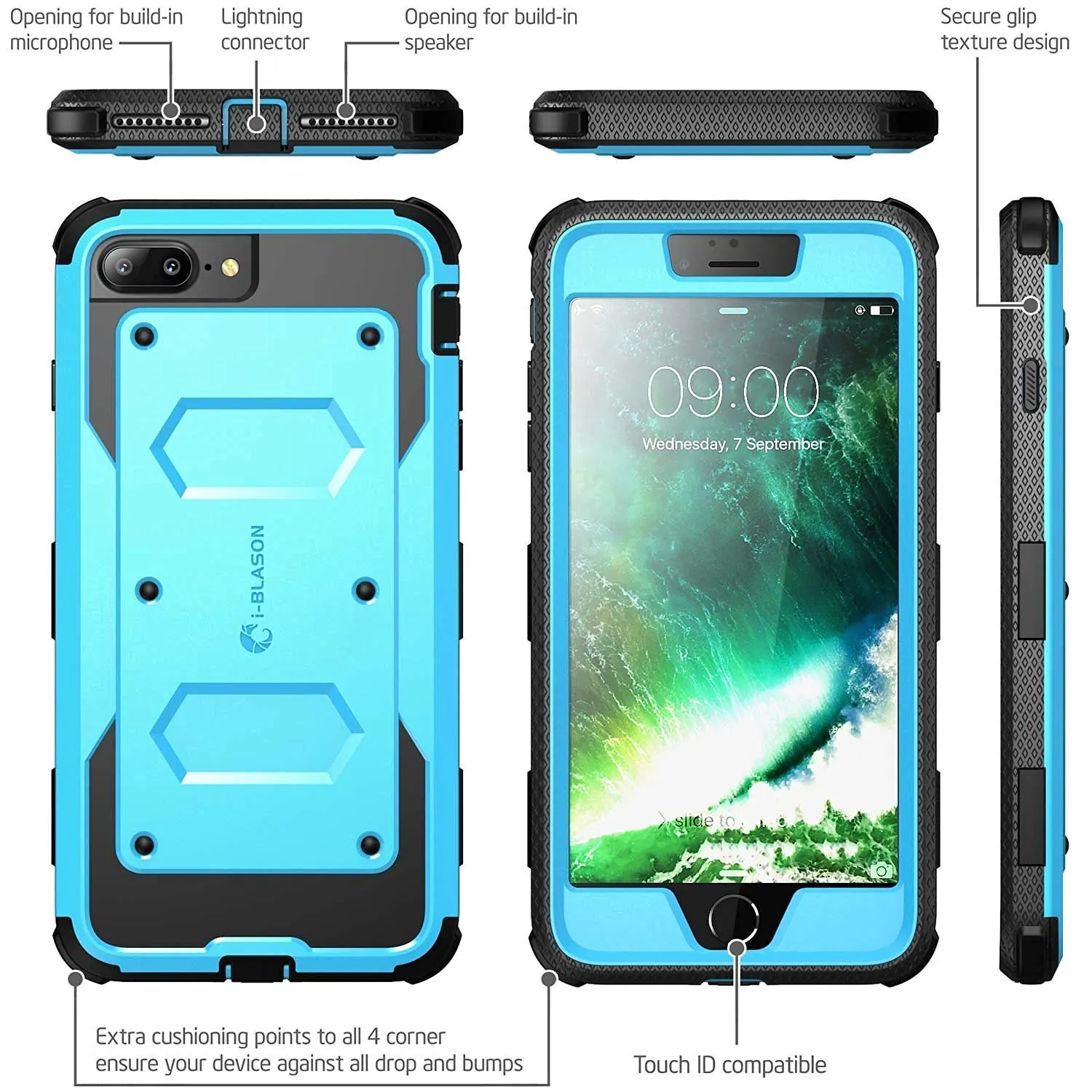 The ArmorBox case for iPhone 7 Plus in blue offers robust protection while maintaining a sleek design. Built to withstand the rigors of daily use, this case features a combination of durable materials that guard your device against drops, scratches, and other potential damages.
