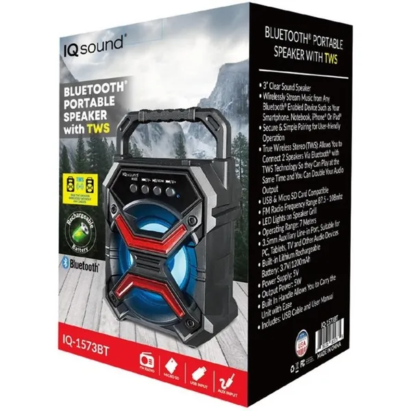 IQ Sound IQ-1573BT Portable Bluetooth Speaker System - 5 W RMS - Blue