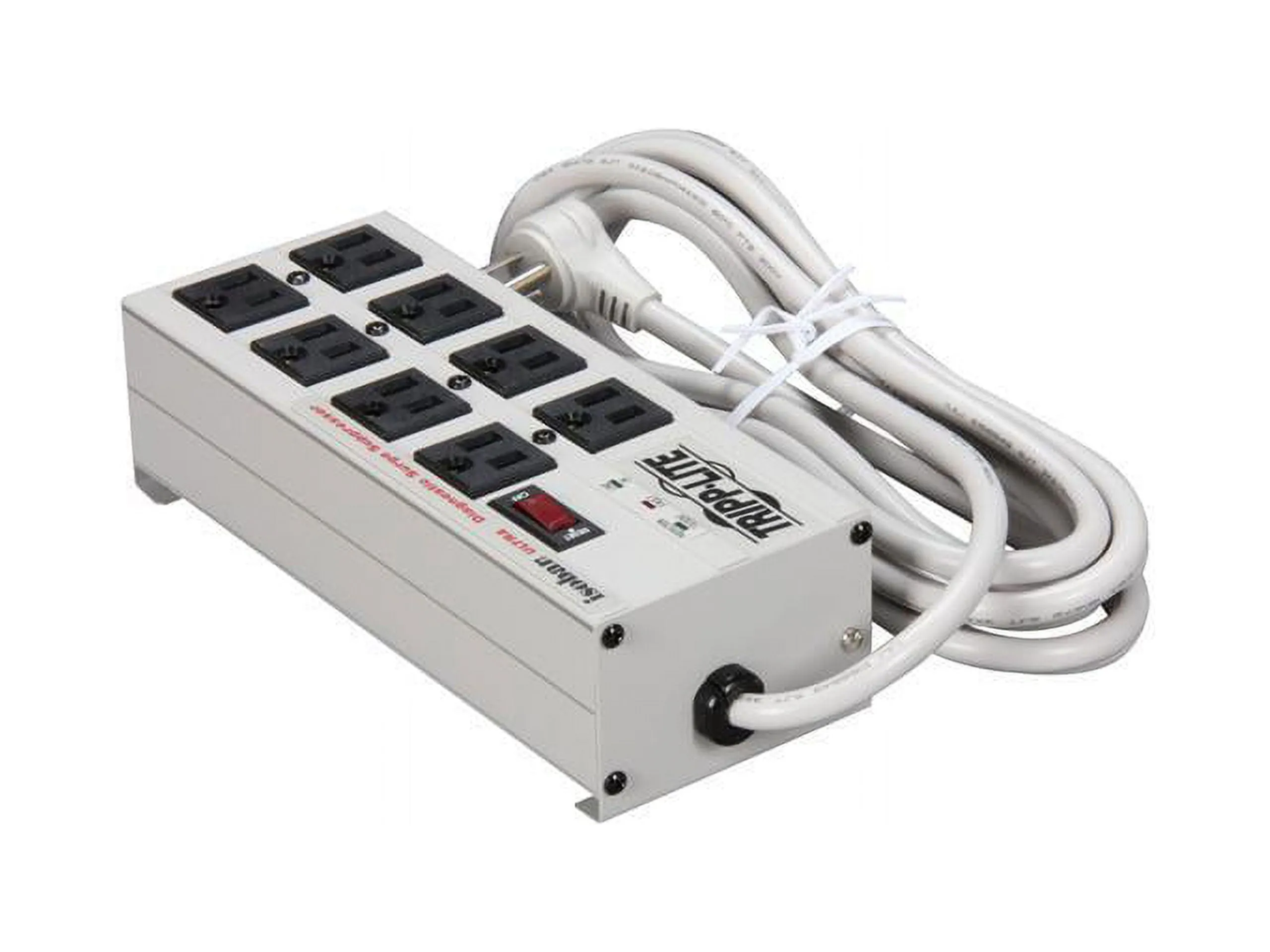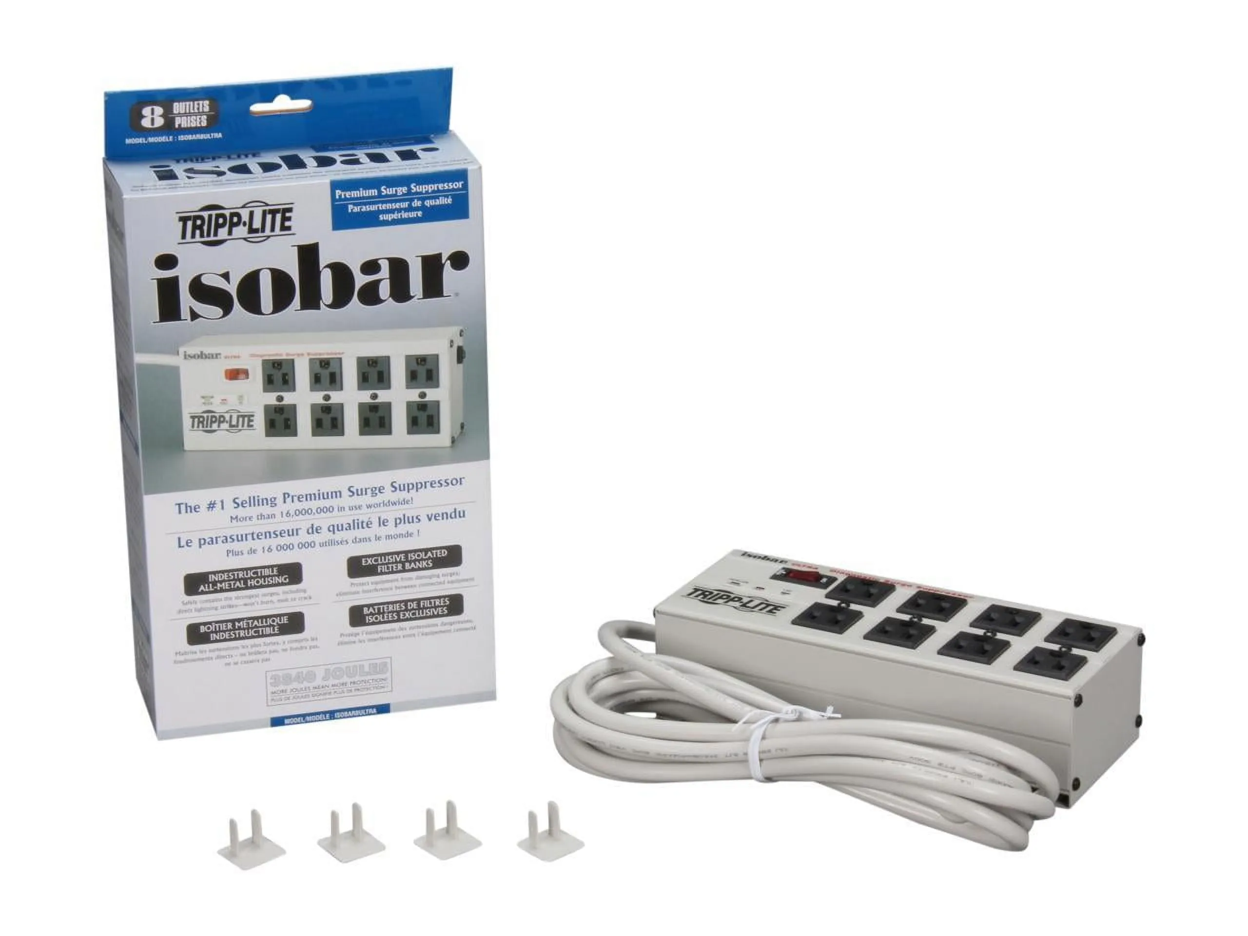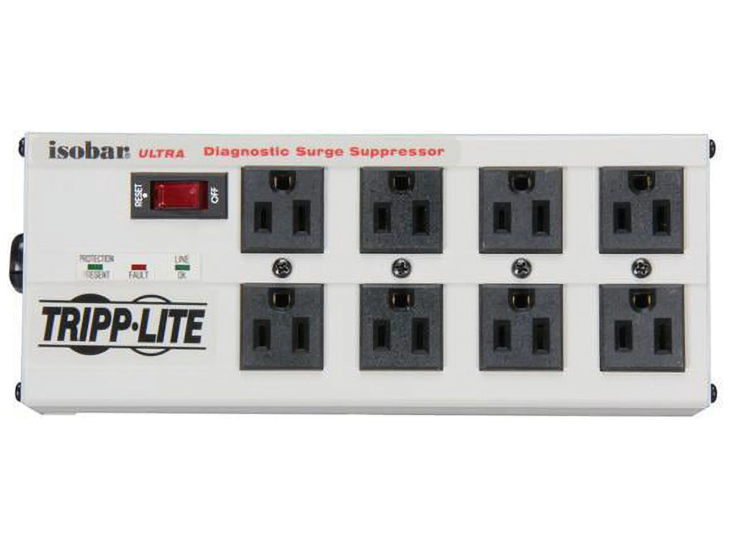 Isobar 8-Outlet Surge Protector 12 Ft Cord with Right-Angle Plug 3840 Joules Diagnostic LEDs Metal Housing