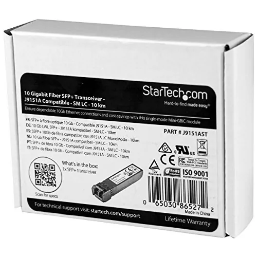 This HP compatible 10 Gigabit fiber SFP+ is engineered by StarTech.com to deliver what you want most in your network connections: reliability. Built to exacting specifications and fully tested to ensure maximum performance, you can install this high-quality fiber transceiver module into HP networking devices that support the J9151A transceiver module, as well as other major brands of networking equipment.