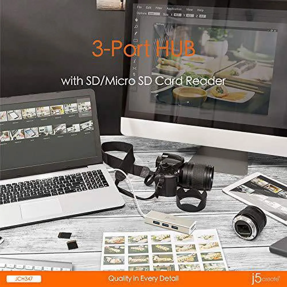 j5create Accessory JCH347 USB-C3.1 3-Port HUB with SD microSD Card Reader RTL