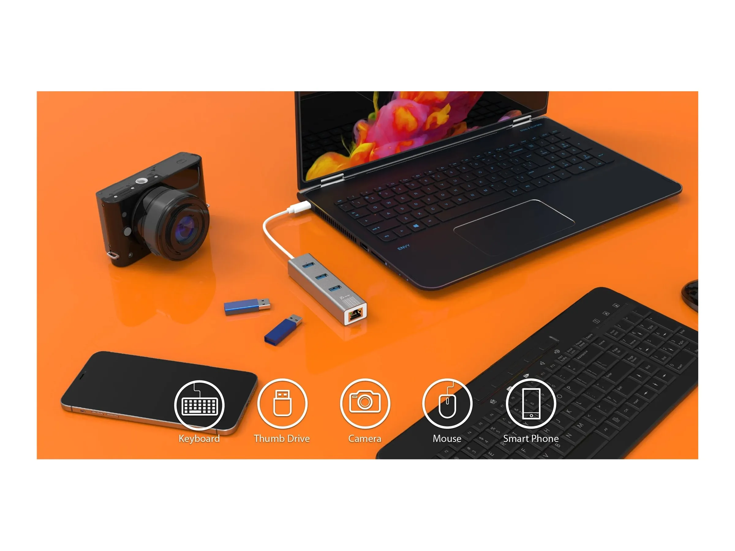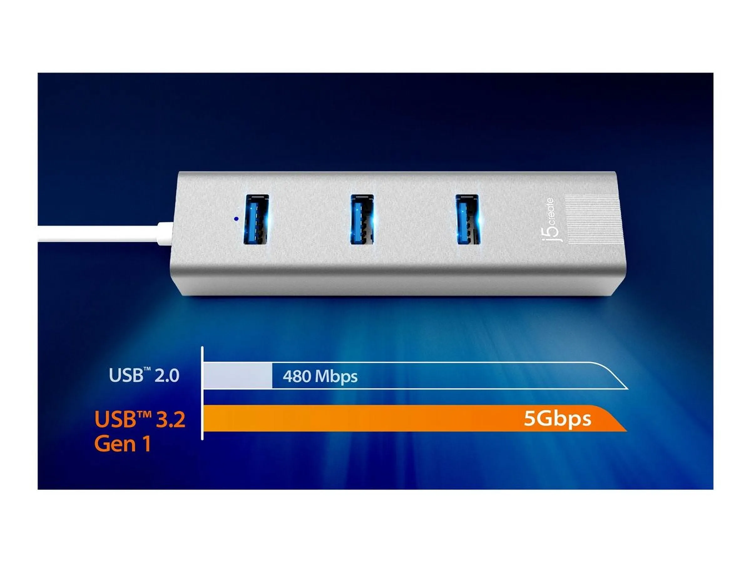 j5create Accessory JCH474 USB-C 3-Port Hub with Gigabit Ethernet Retail