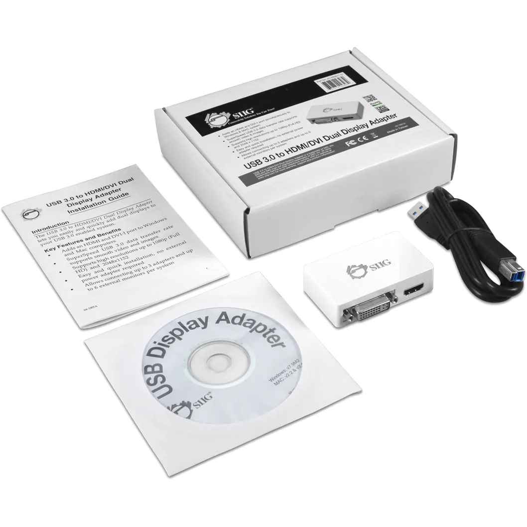 SIIG USB 3.0 to HDMI/DVI Dual Display Adapter - 1 x HDMI - 1 x Total Number of DVI (1 x DVI-I) - PC Mac - 2 x Monitors Supported DISPLAY ADAPTER