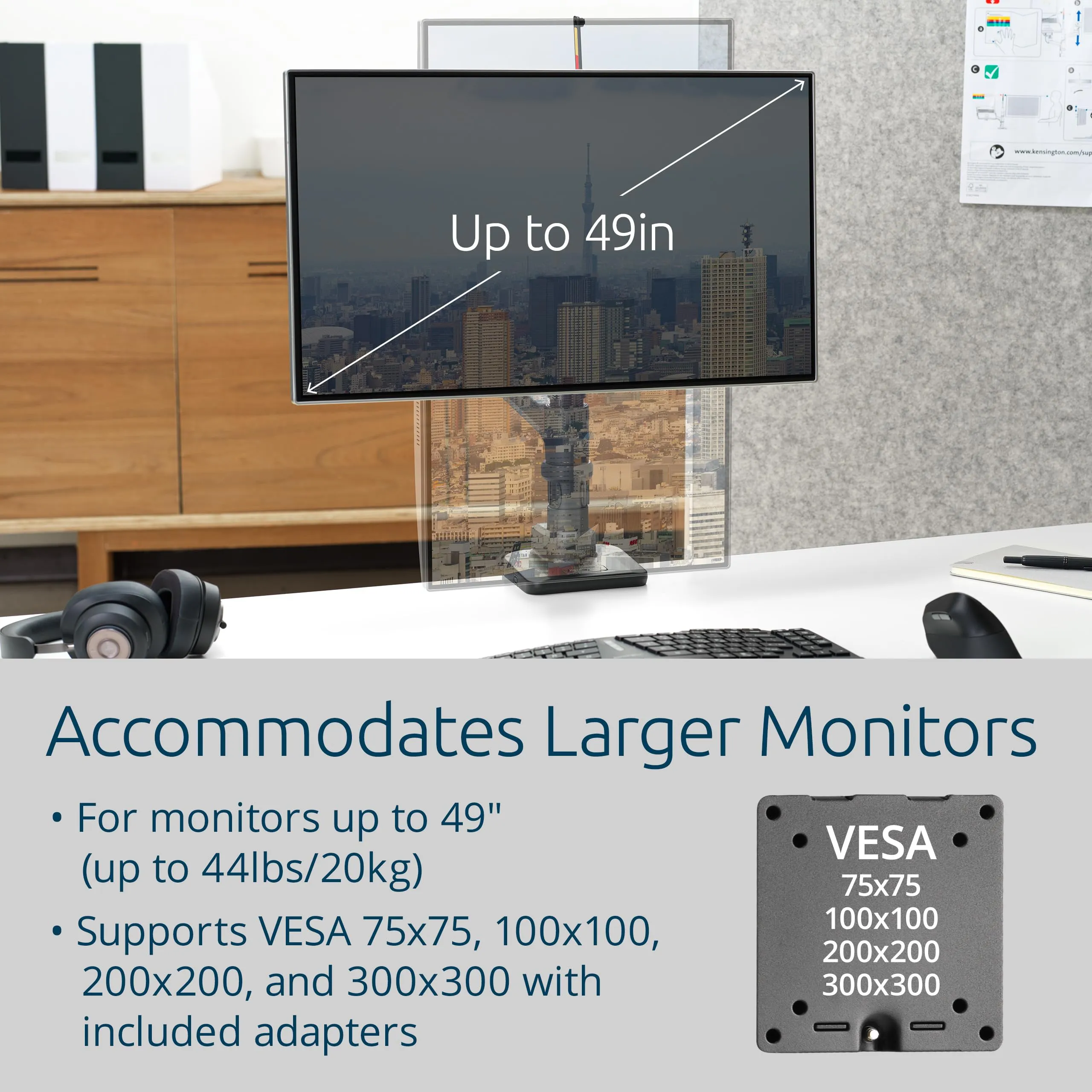 The SmartFit Premium Heavy Duty Monitor Arm is designed to elevate your workspace by securely holding larger monitors, ranging from 24 to 49 inches and weighing up to 44lbs (20kg). With compatibility for VESA 75, 100, 200, and 300 1:1 mounting patterns, this monitor arm enhances workspace organization, promotes optimal ergonomic positioning, and simplifies installation.
